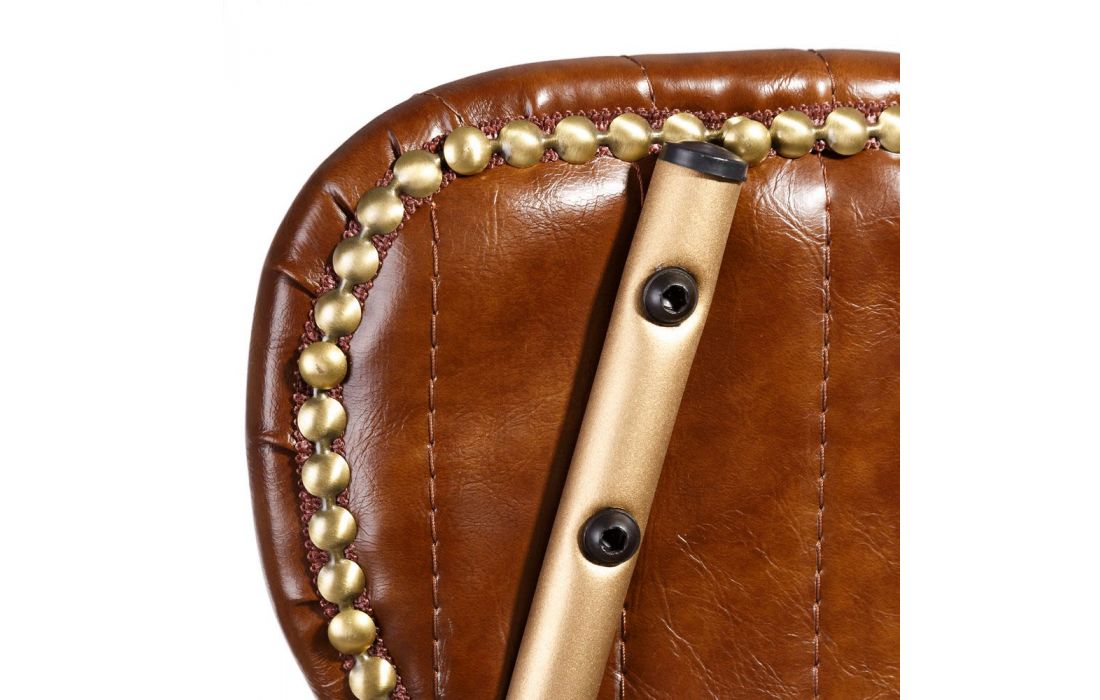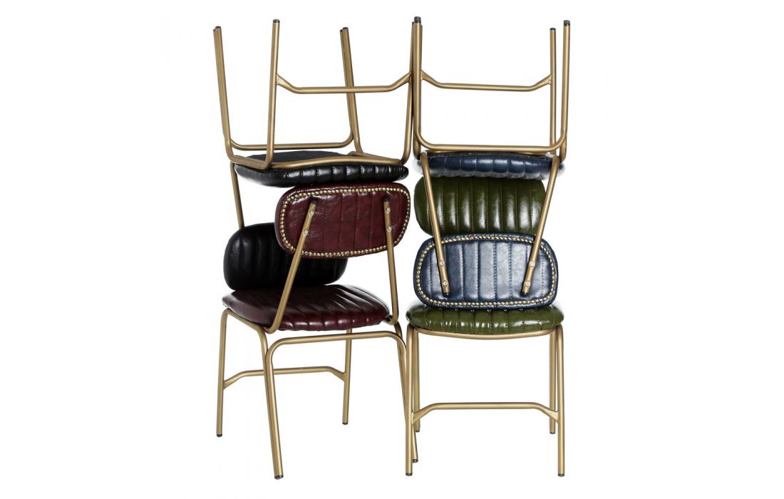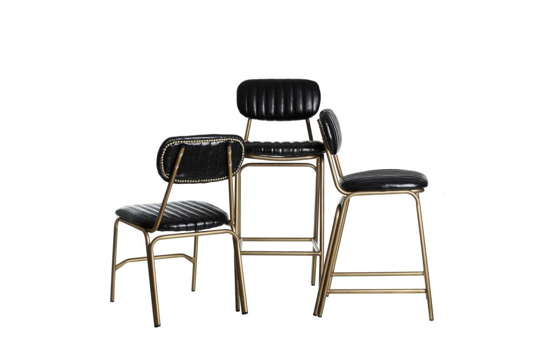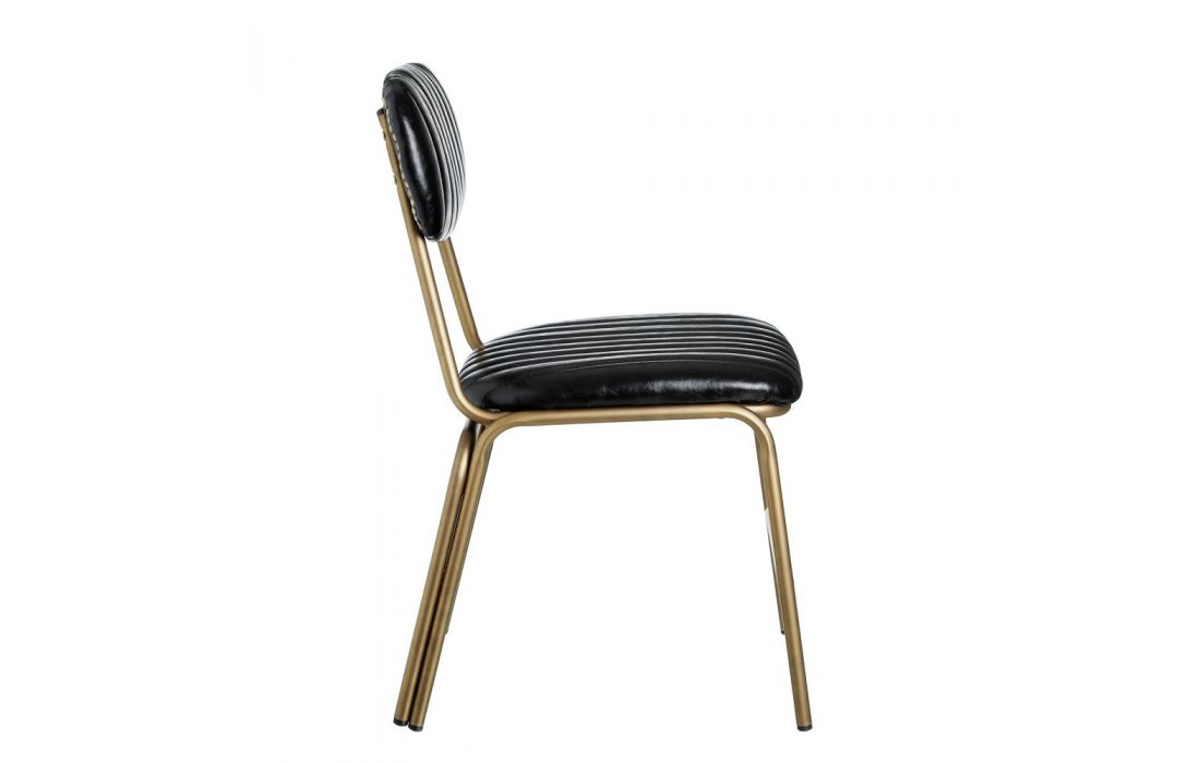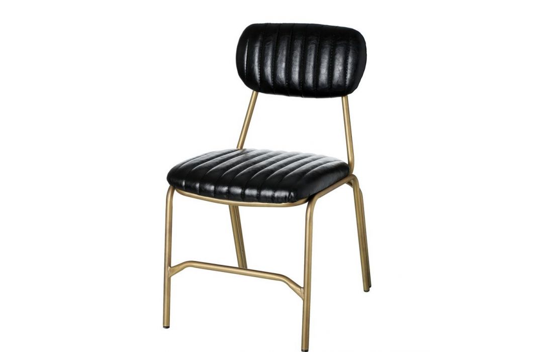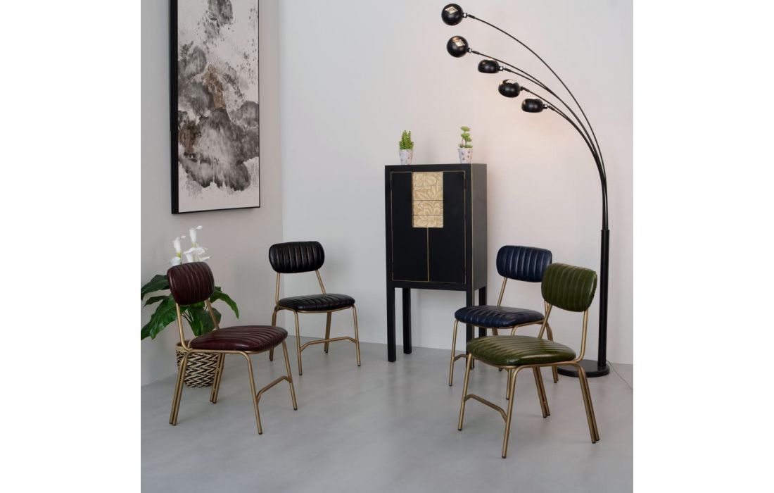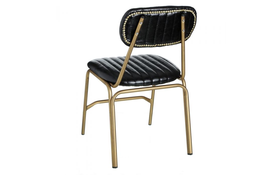 Chair with upholstered in synthetic leather with 2 colors available, brown and black with metal feet in golden color.