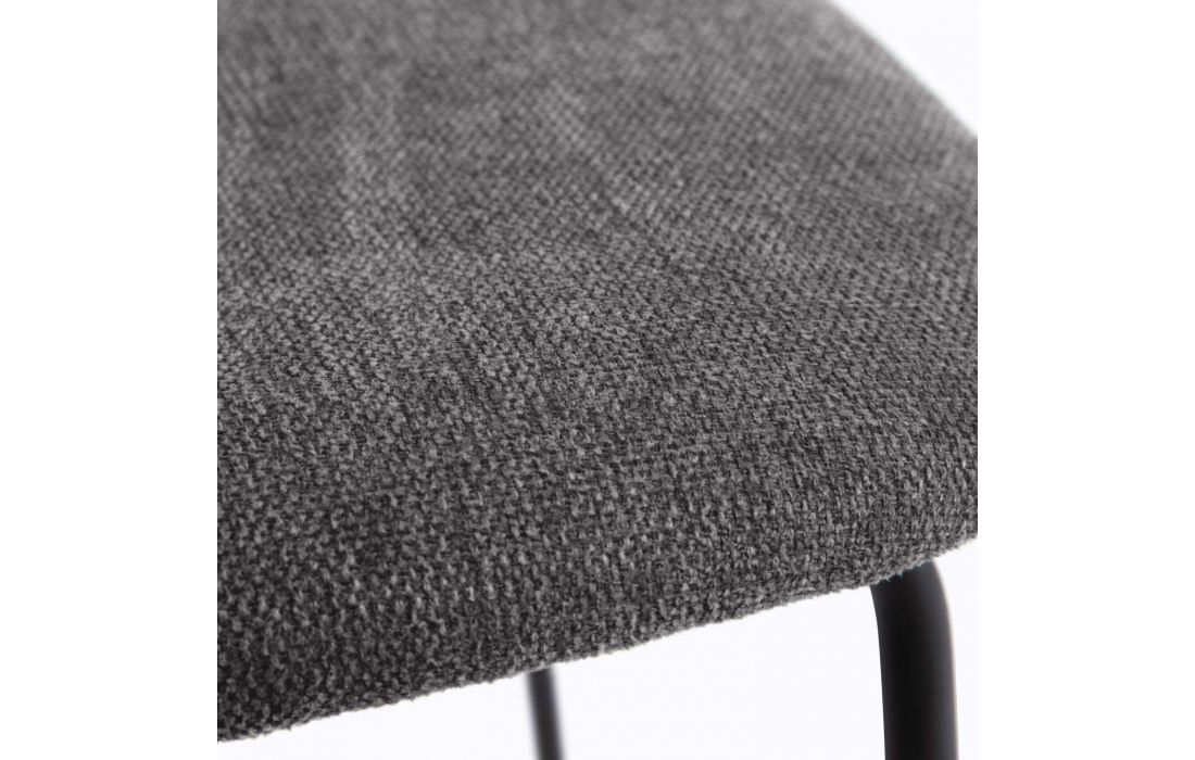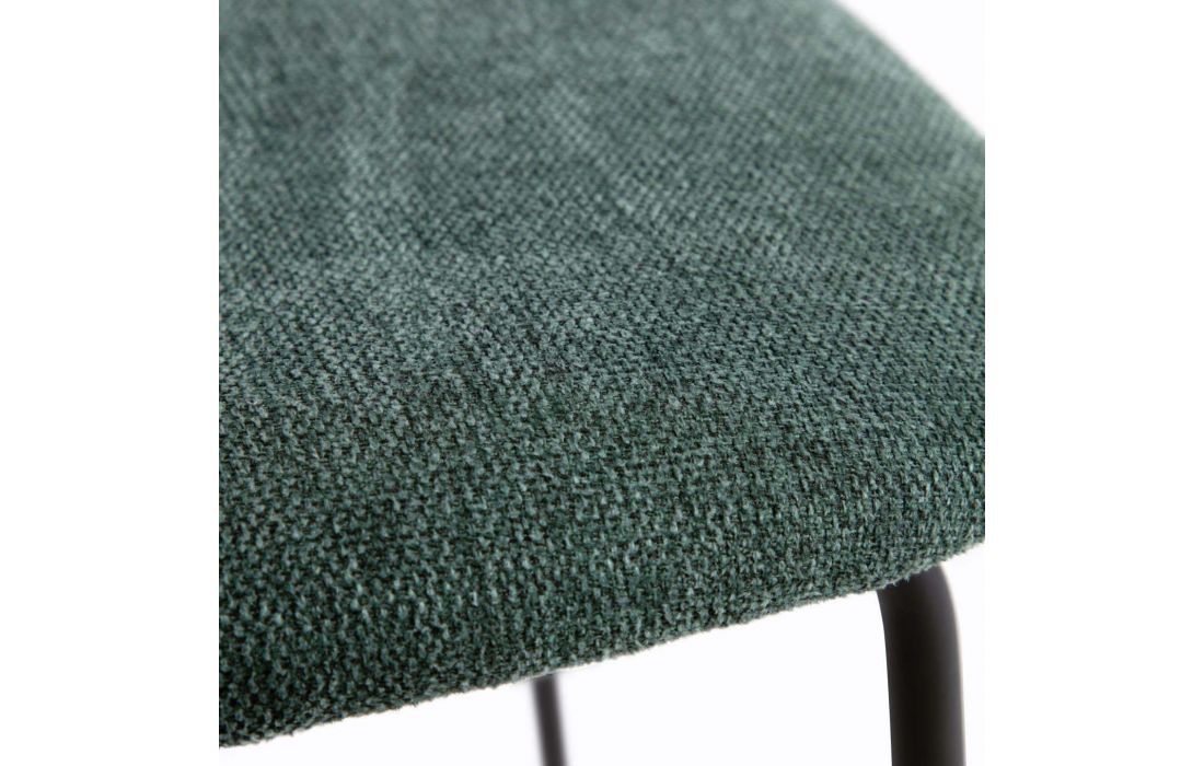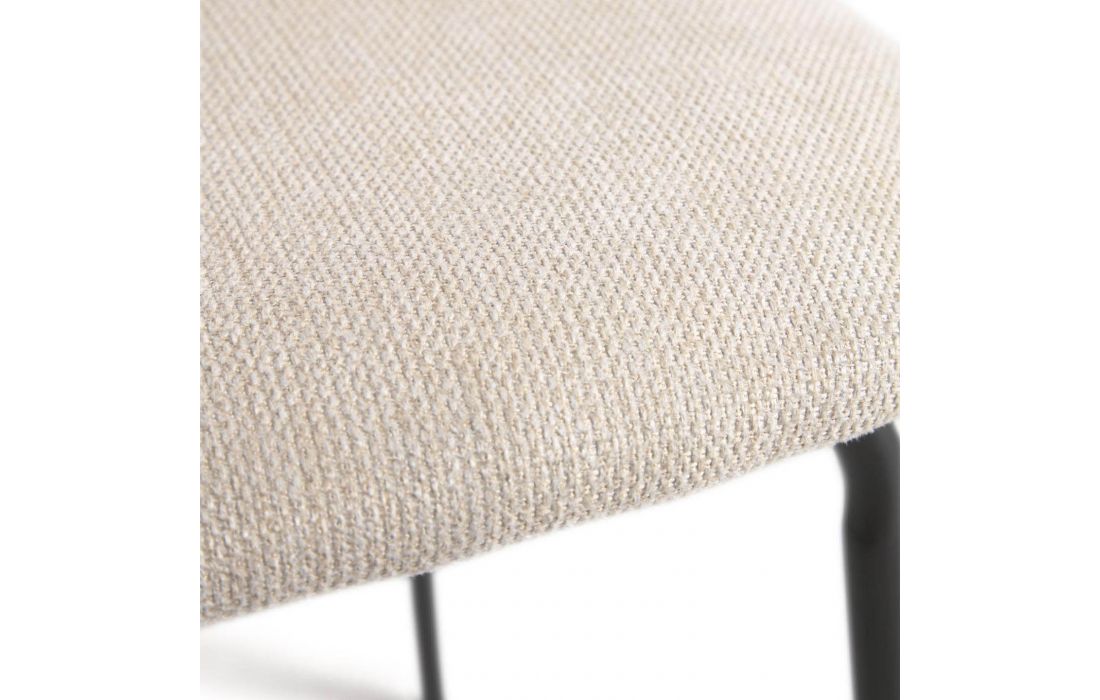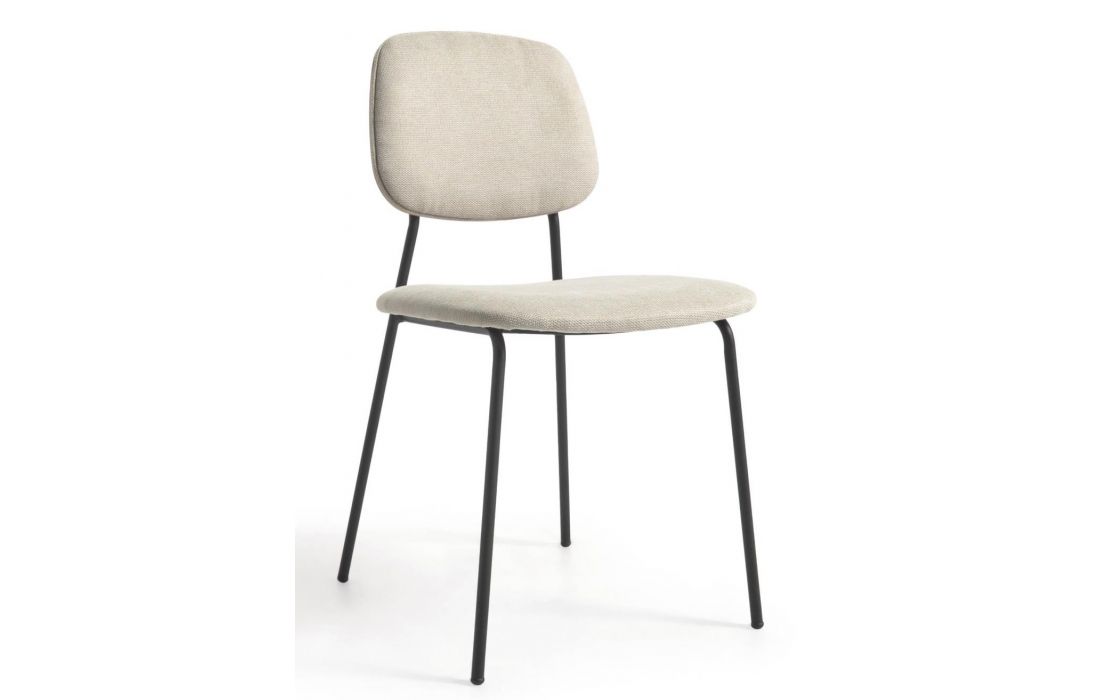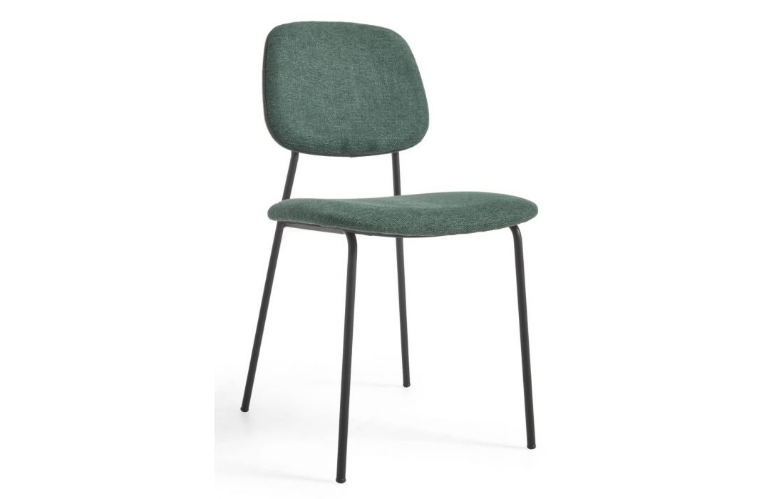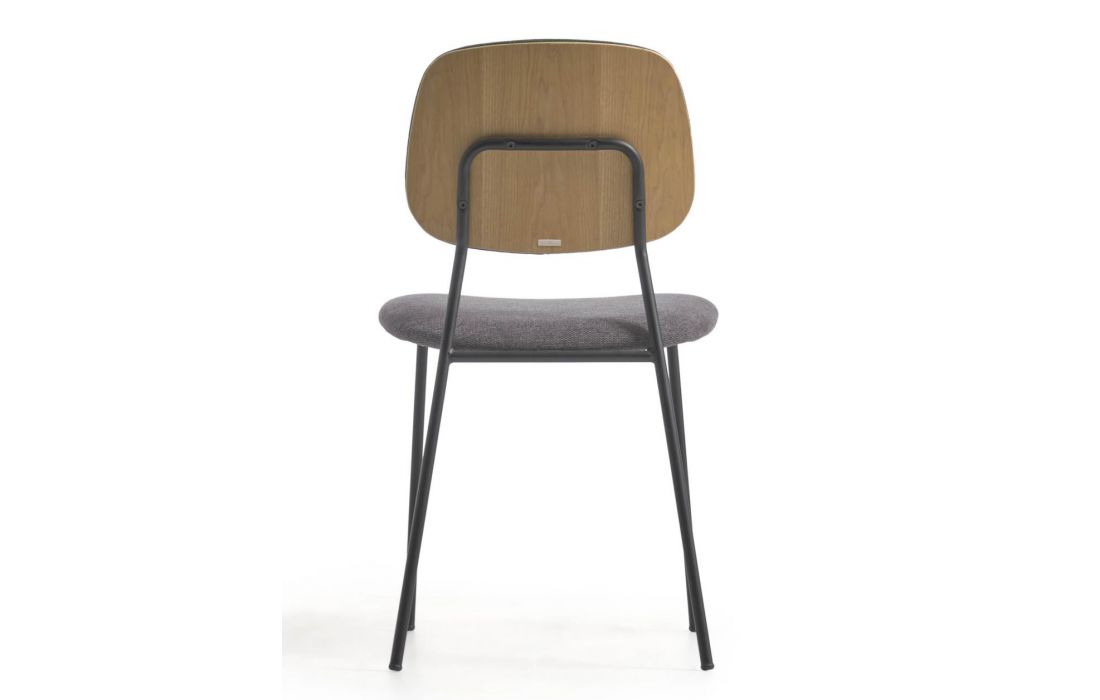 Chair with black metal frame and oak veneer with fabric upholstery, available in beige, dark gray and dark green