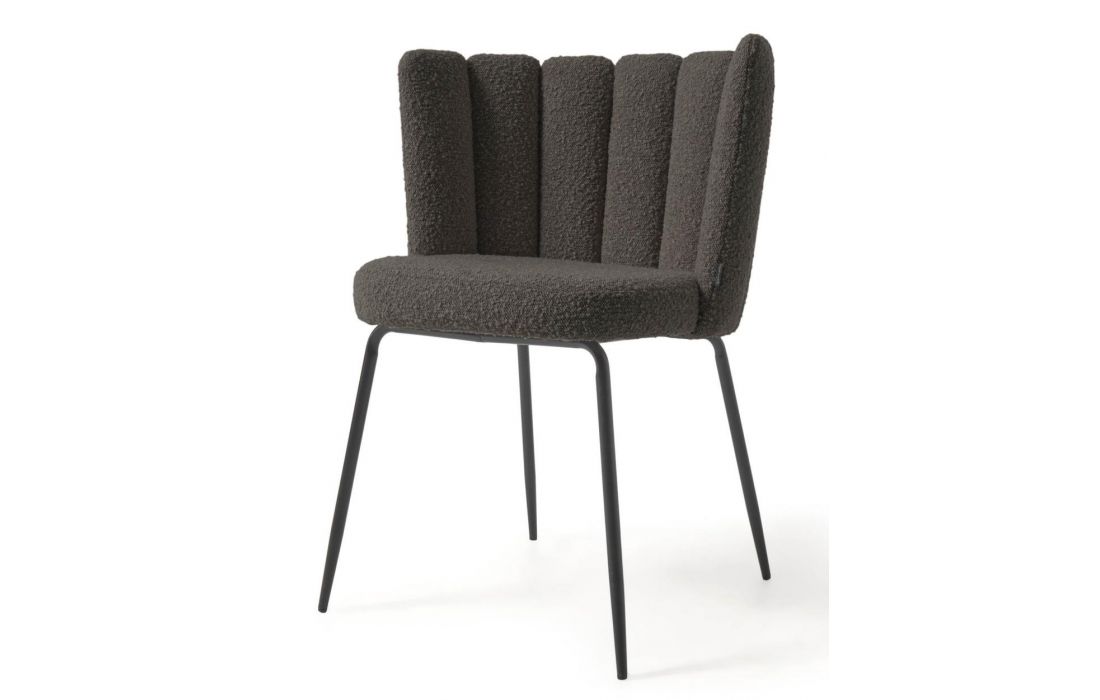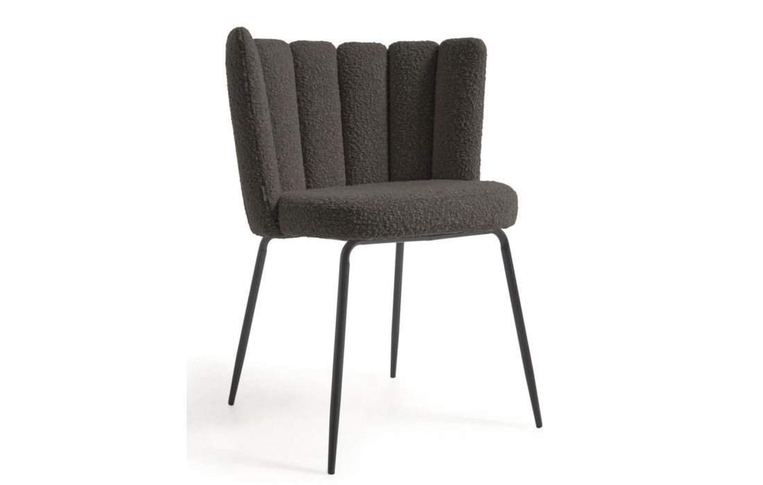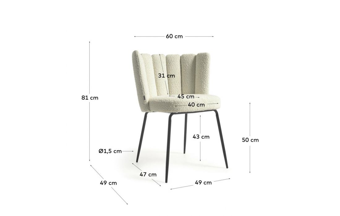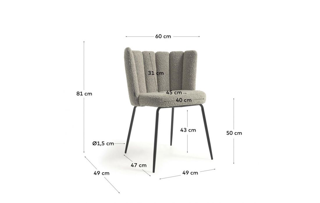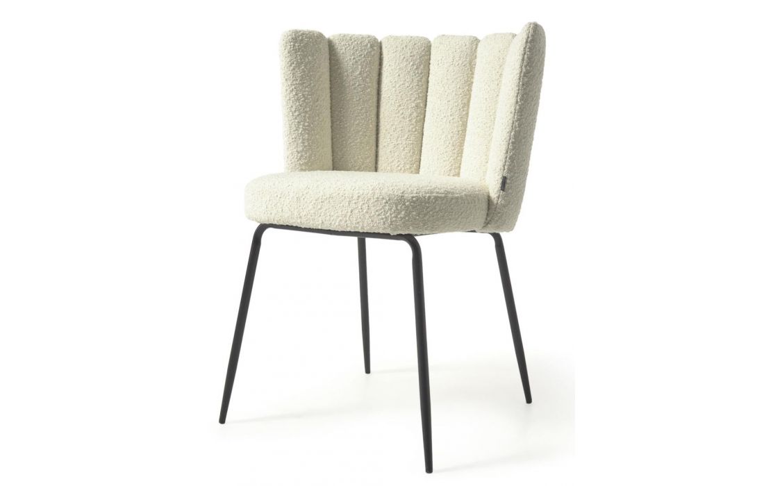 Chair with black metal frame and sheep fabric upholstery, available in light gray, white and black