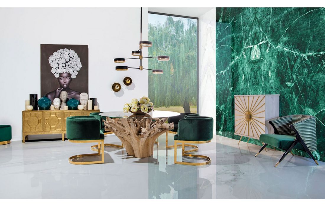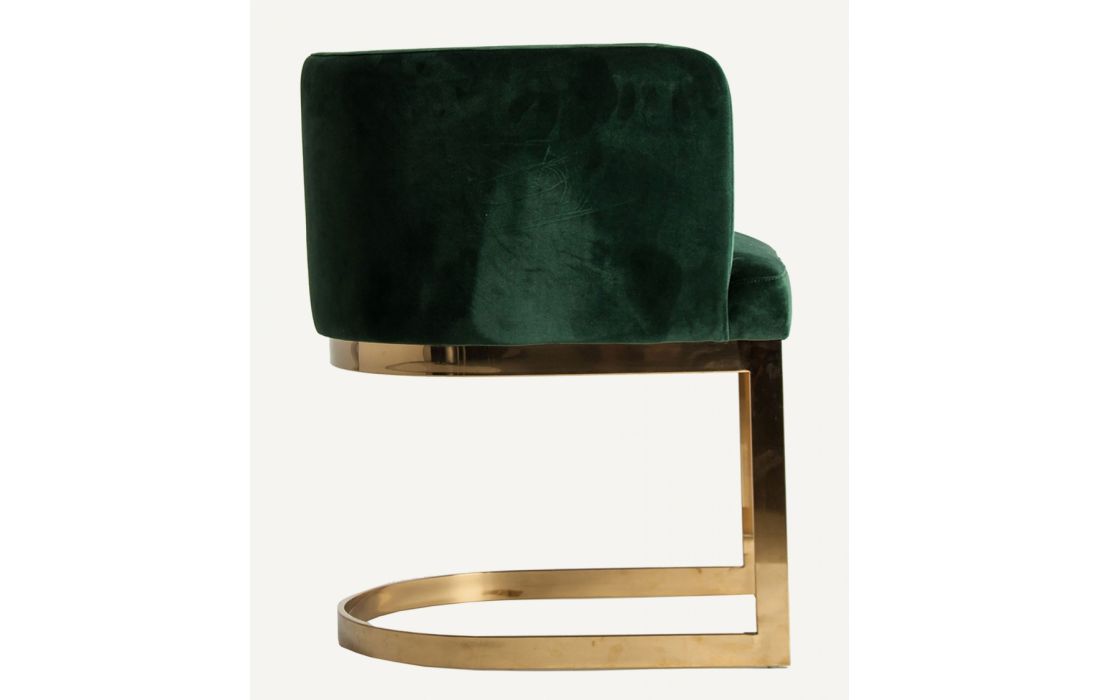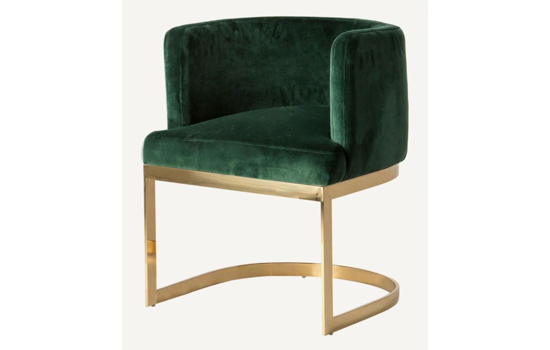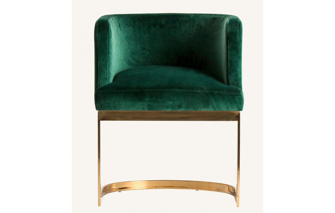 Armchair with golden steel legs and green velvet upholstery