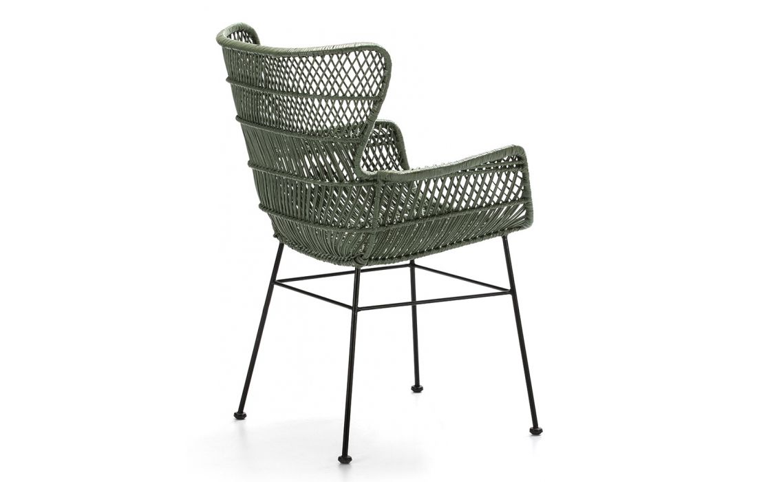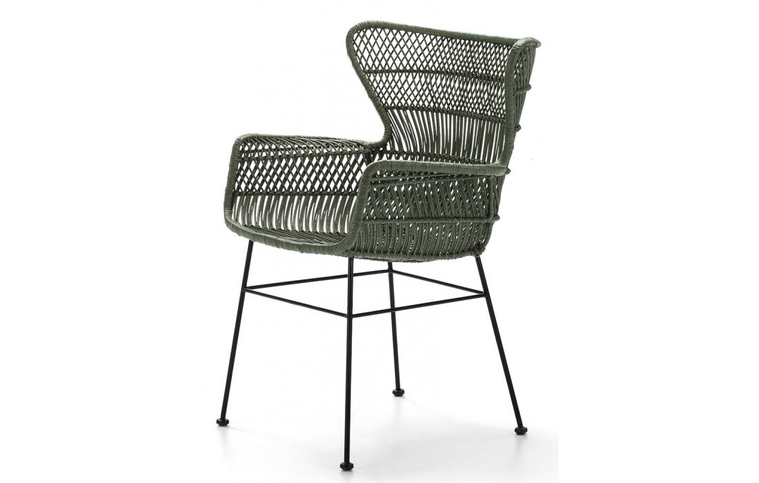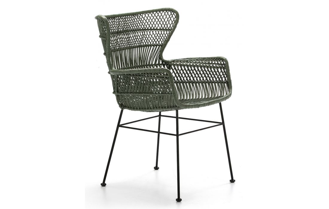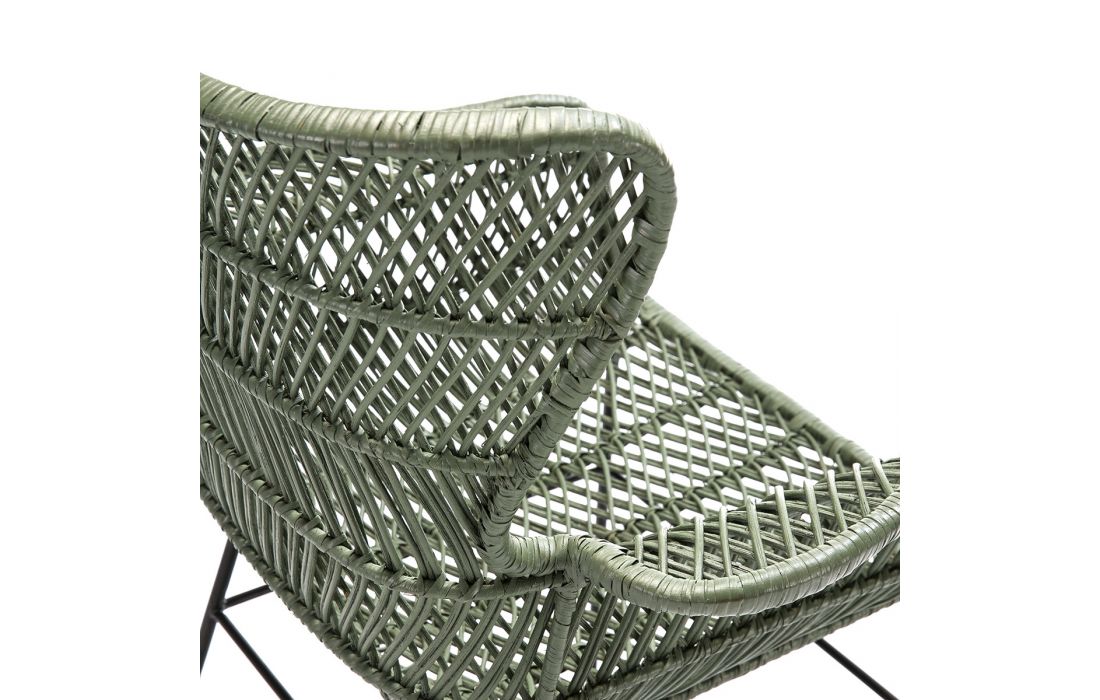Armchair in black metal and green wicker
