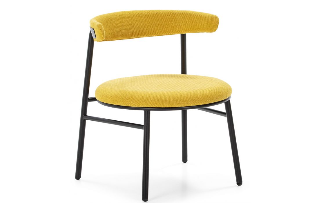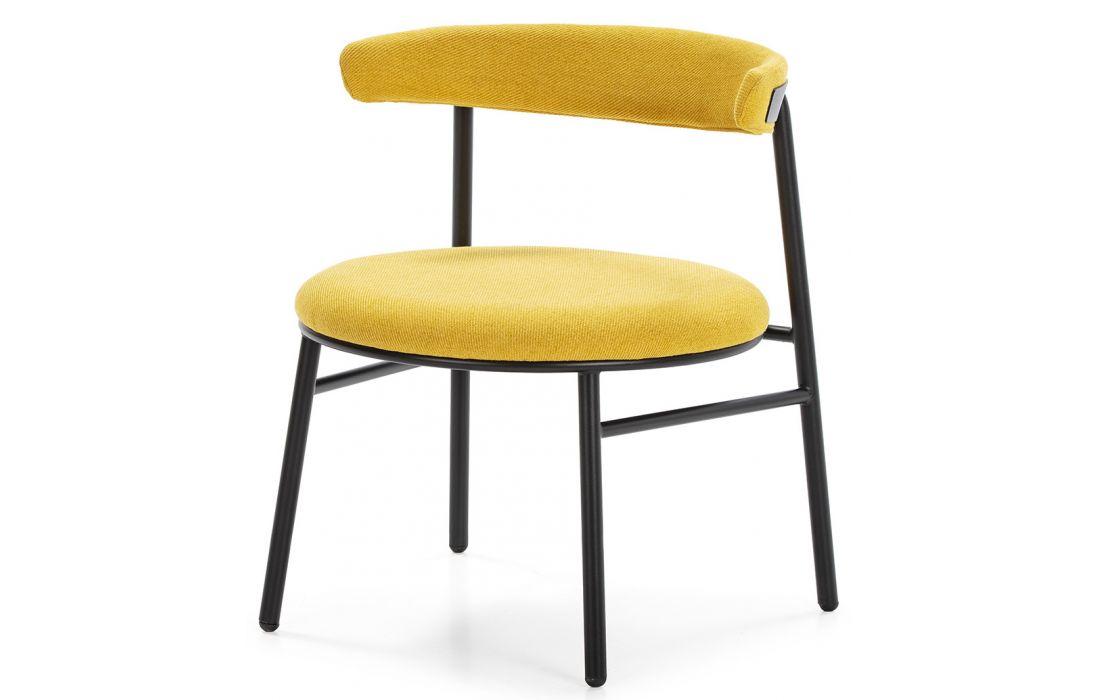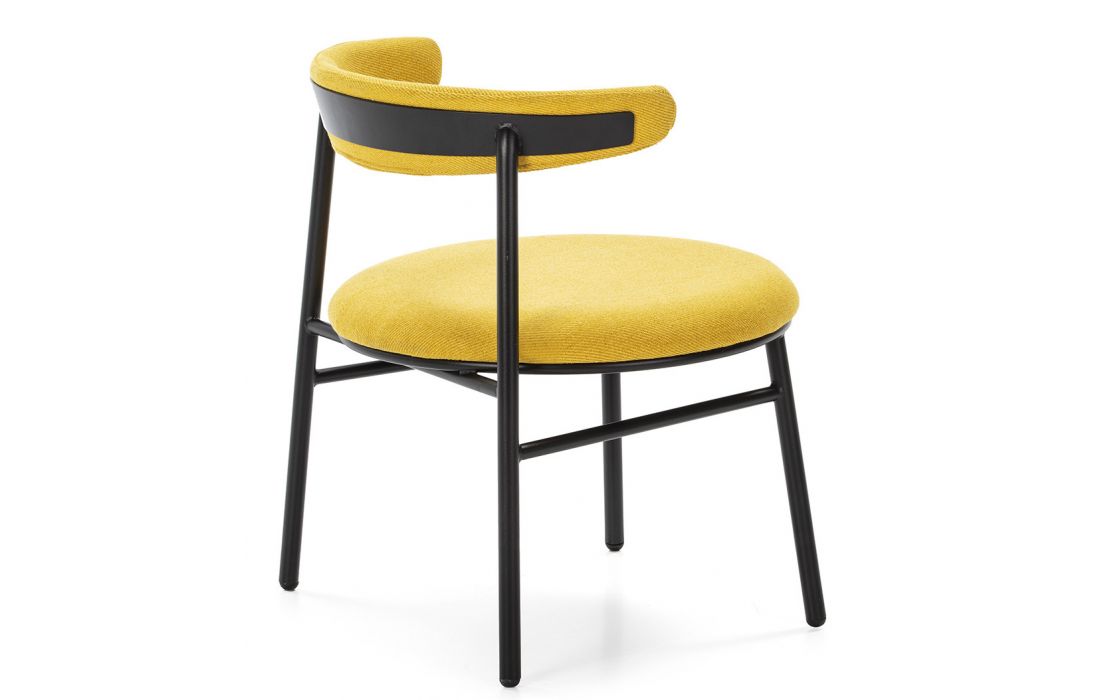 Chair with black metal structure and yellow polyester fabric upholstery