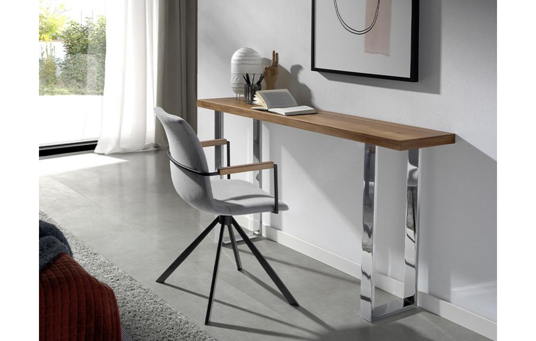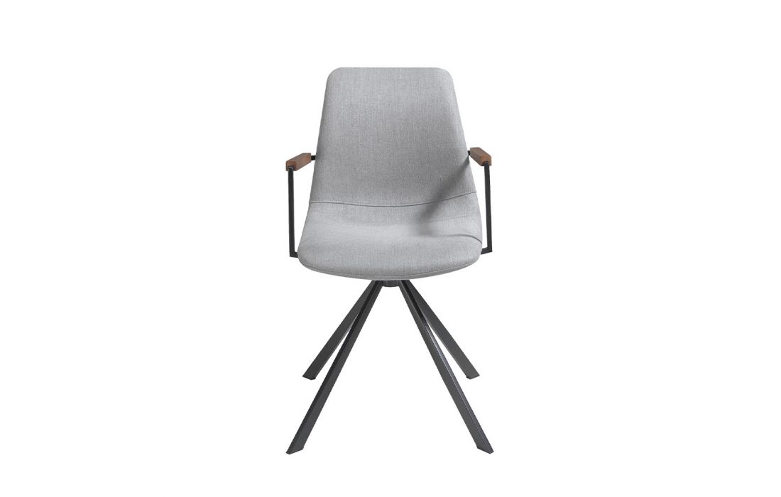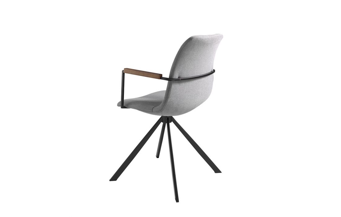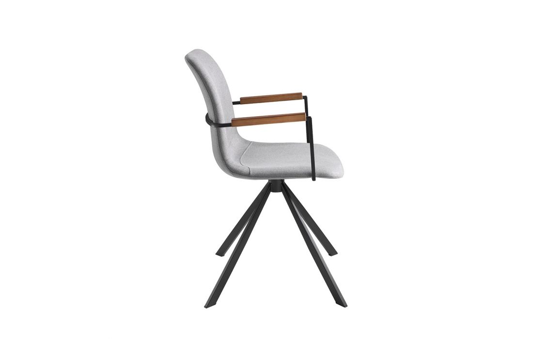 Swivel chair upholstered in fabric with black steel legs and walnut armrestsRecipient :