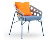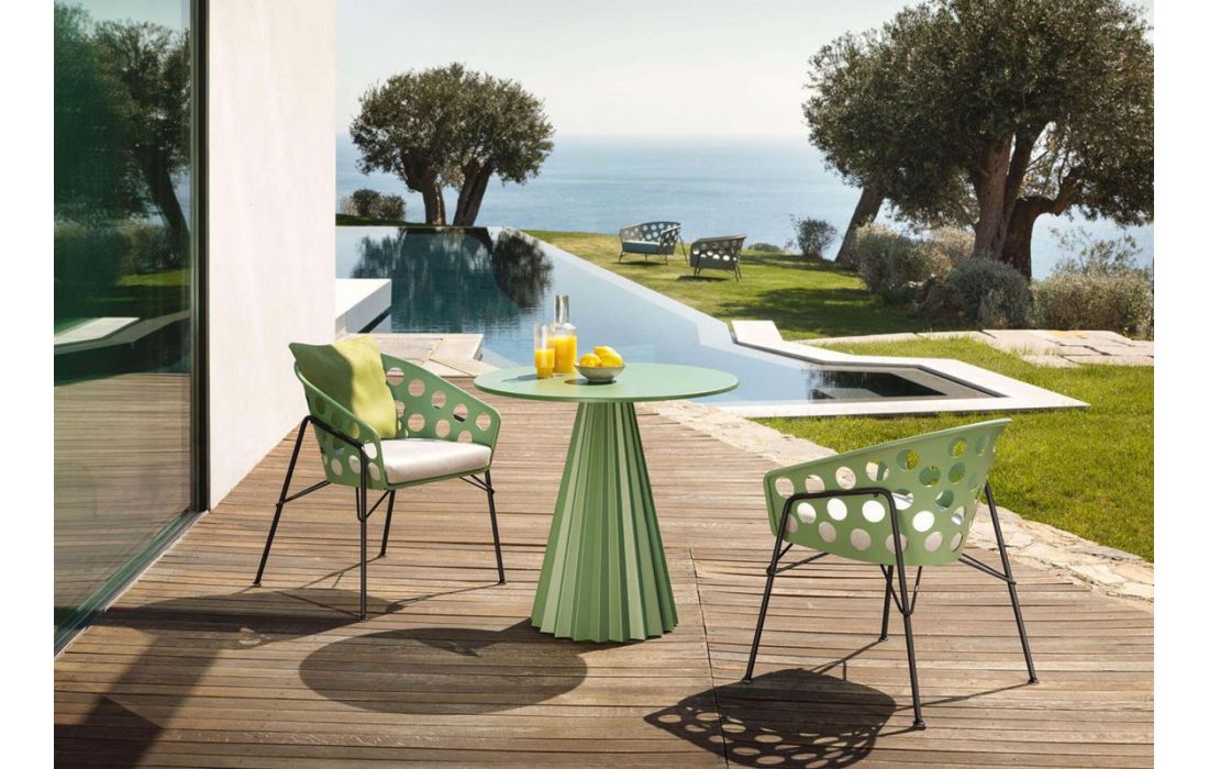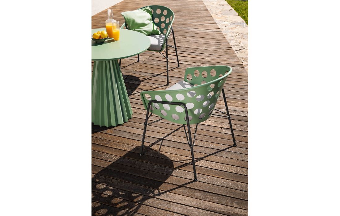 Chair with structure and backrest in lacquered metal and fabric cushions.Recipient :