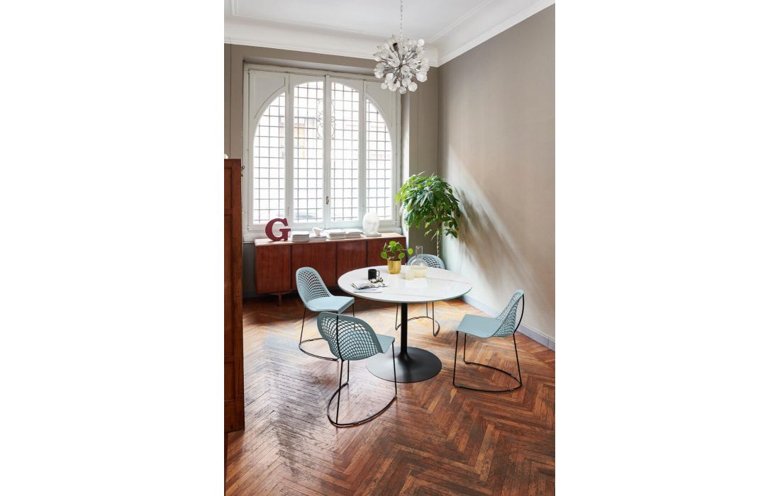 Chair with a sled base, metal structure with leather seat and backrest.Recipient :