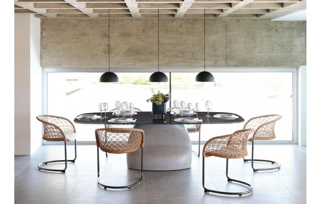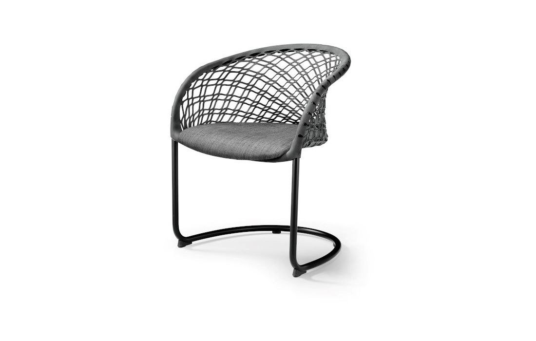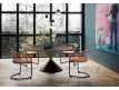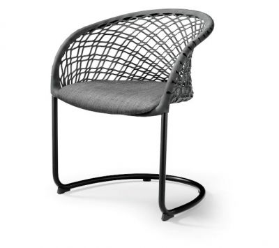 Chair with lacquered metal structure, leather backrest and fabric upholstered seat.Recipient :