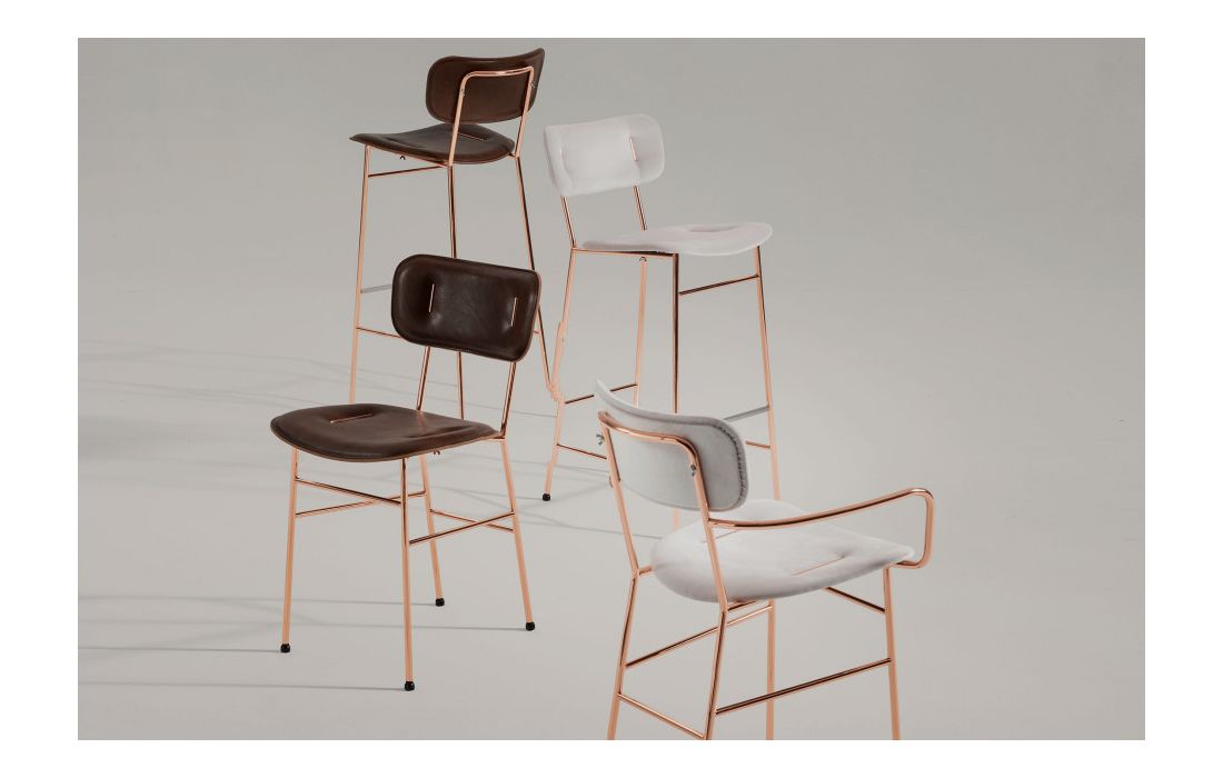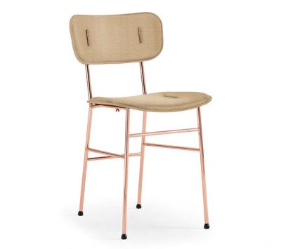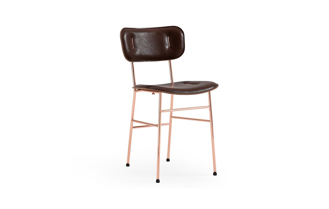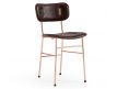 Chair with four-legs metal base. Seat and back in leather, faux leather or fabric with visible metal inserts matching with the structure, wing nuts in black metal.Recipient :