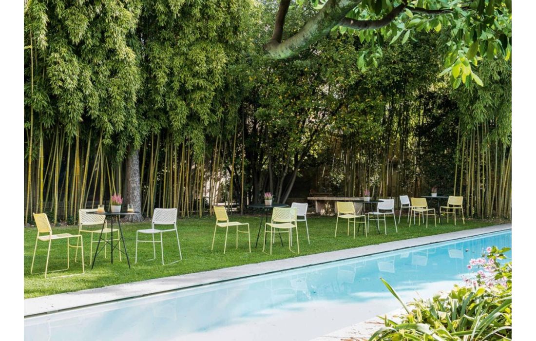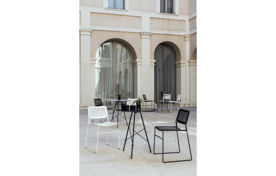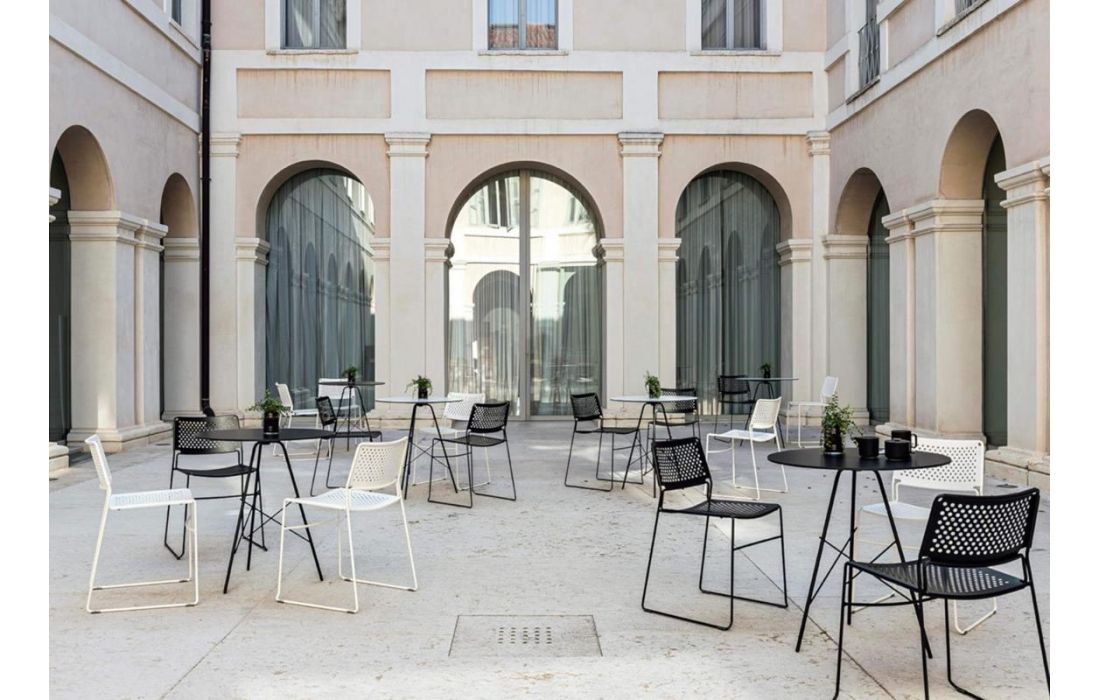 Chair with structure, seat and back in metal. Version available for outdoor or indoor use..Recipient :