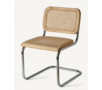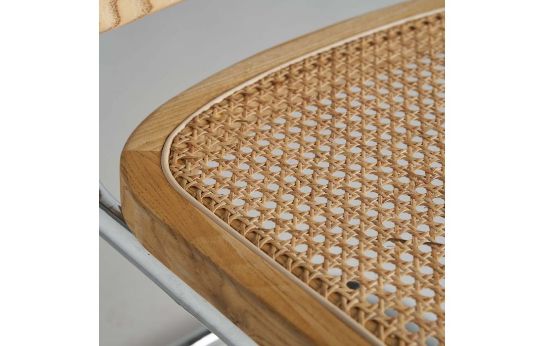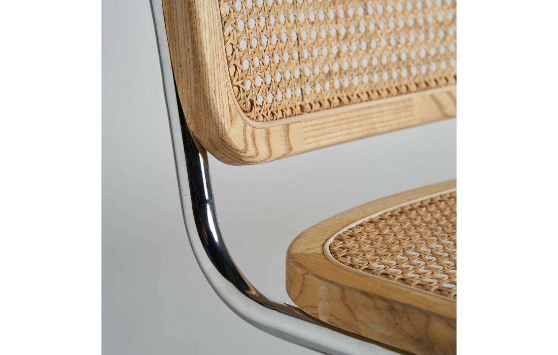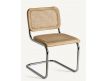Chair with steel structure, seat and back in elm wood and natural colored straw