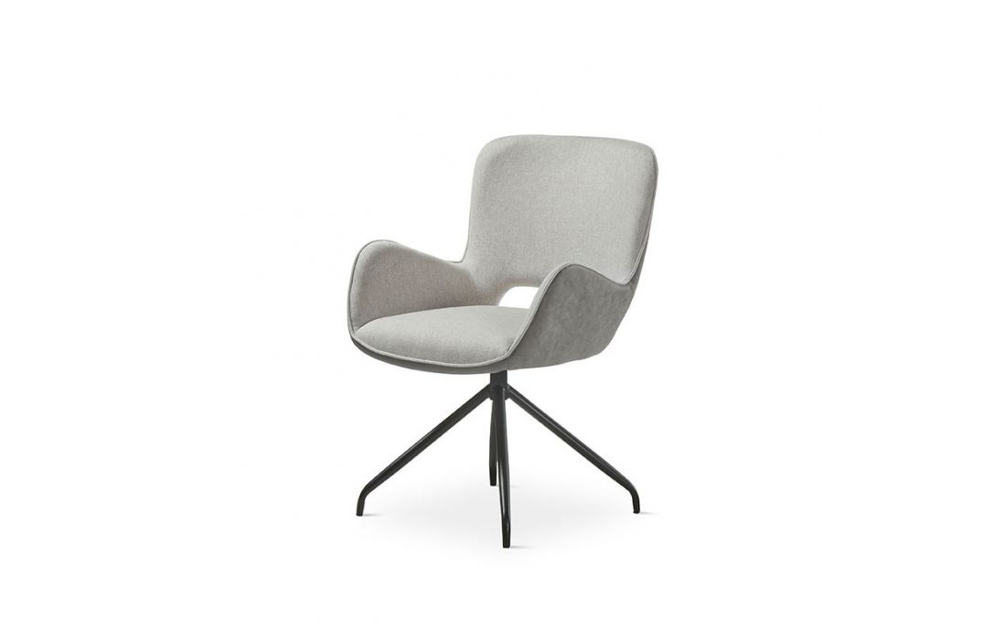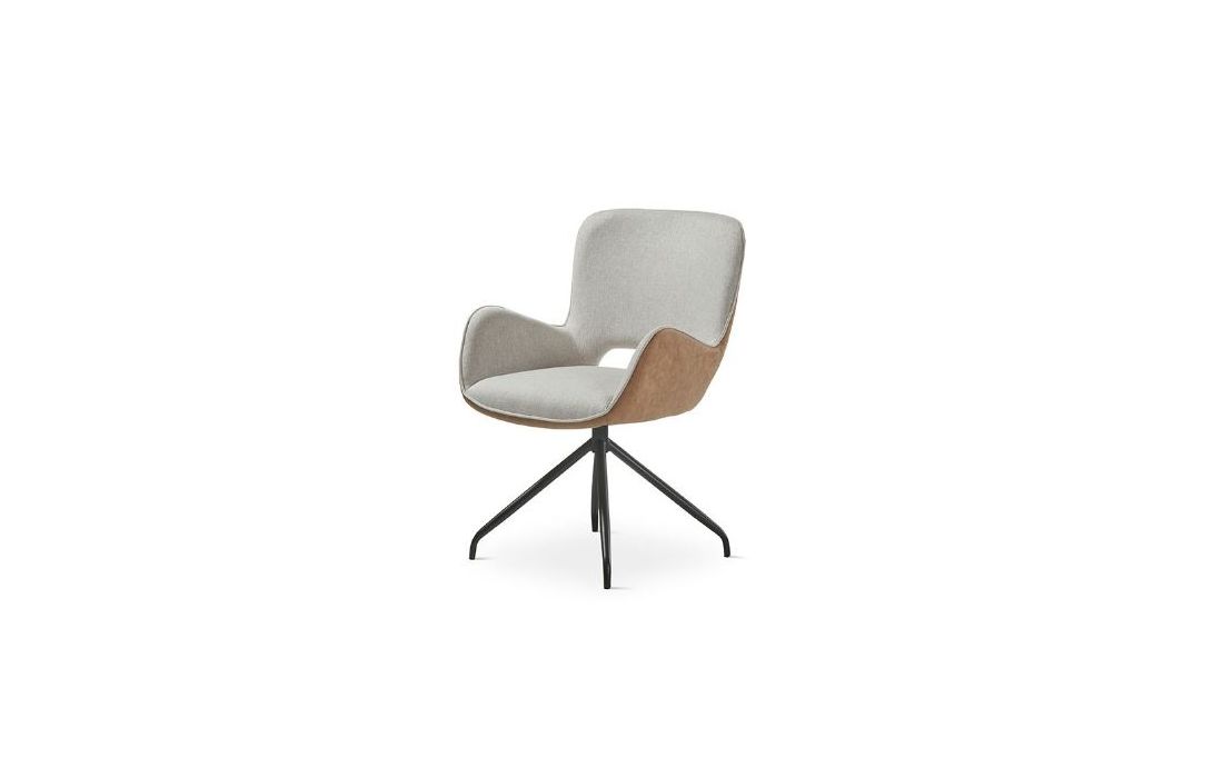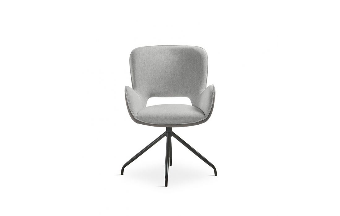 Chair with black metal legs and white fabric with combination available in brown and gray.