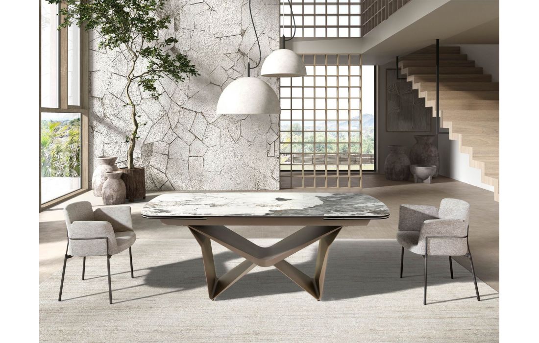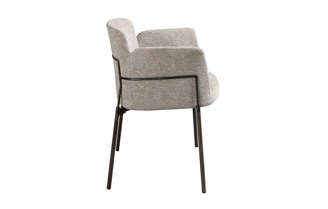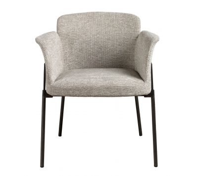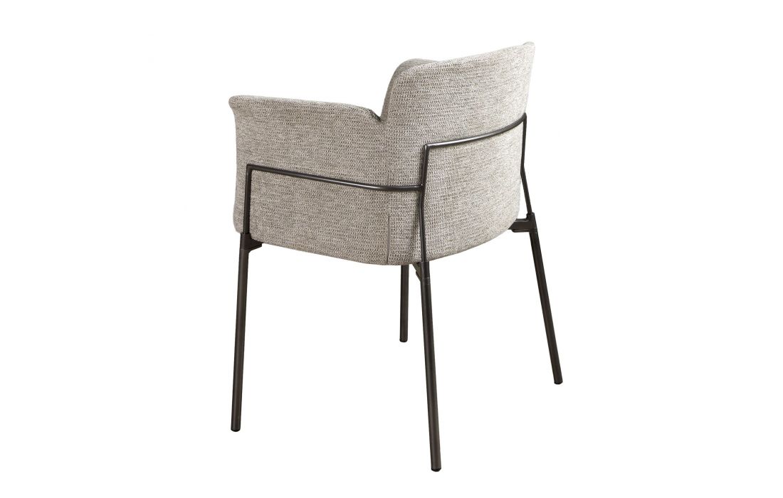 Modern design armchair with seat and back upholstered in fabric and legs in darkened stainless steel, with an avant-garde yet timeless styleRecipient :
