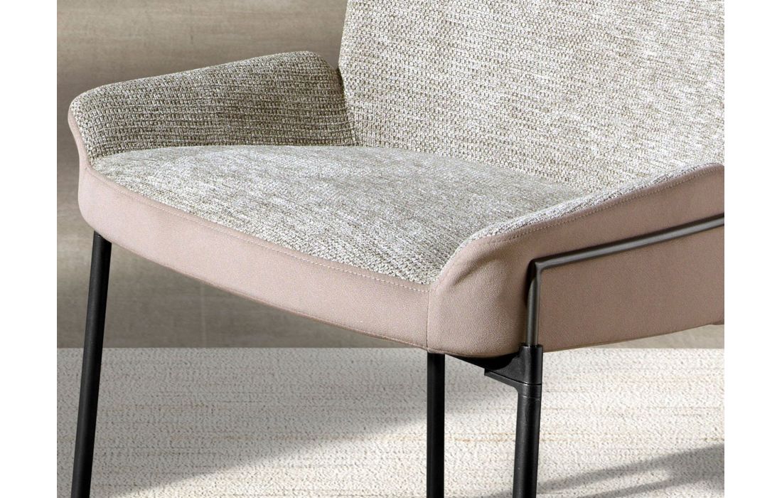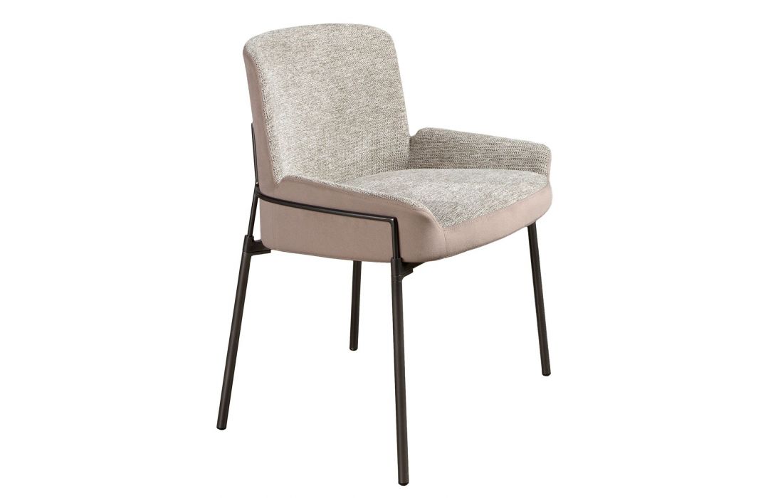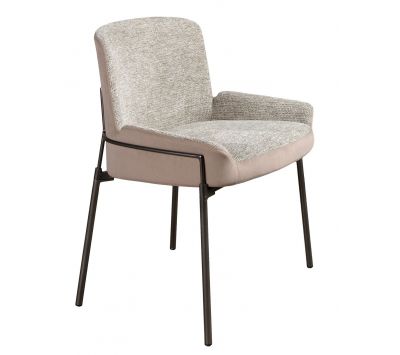 Modern design chair with seat upholstered in gray fabric and back upholstered in velvet fabric and its legs in darkened stainless steel with an avant-garde styleRecipient :