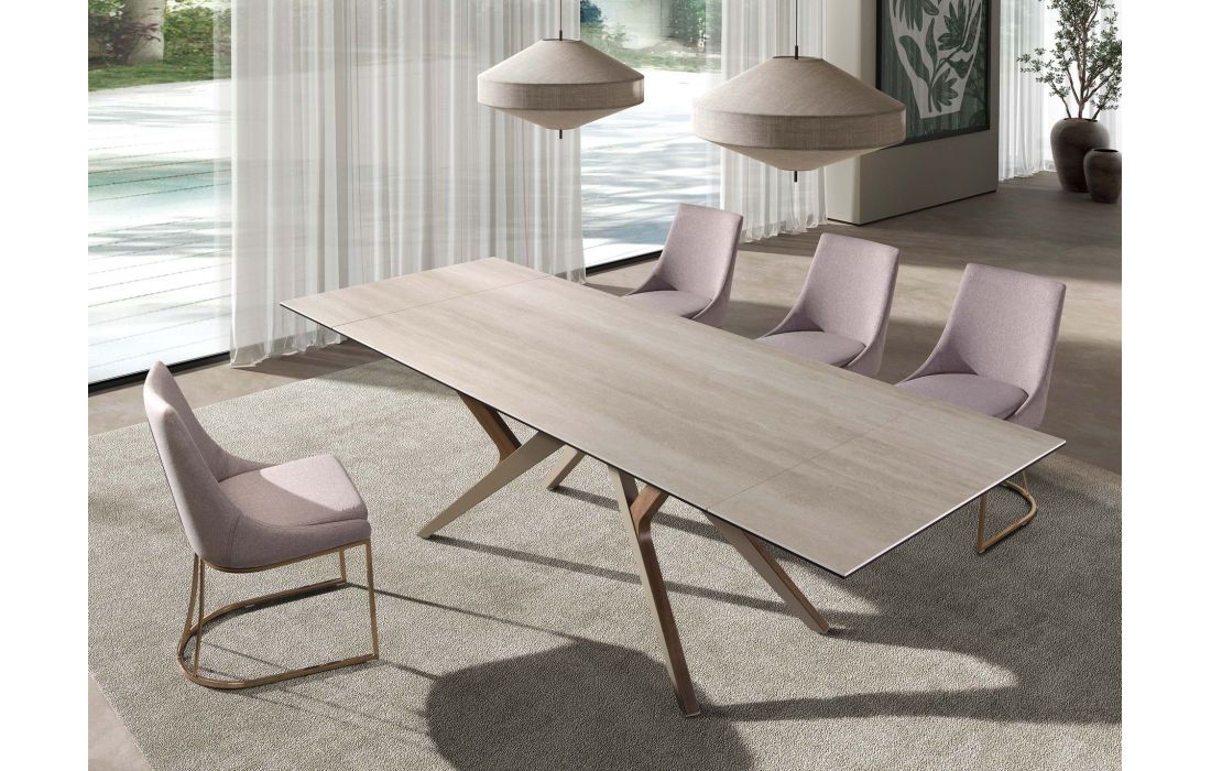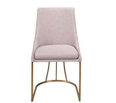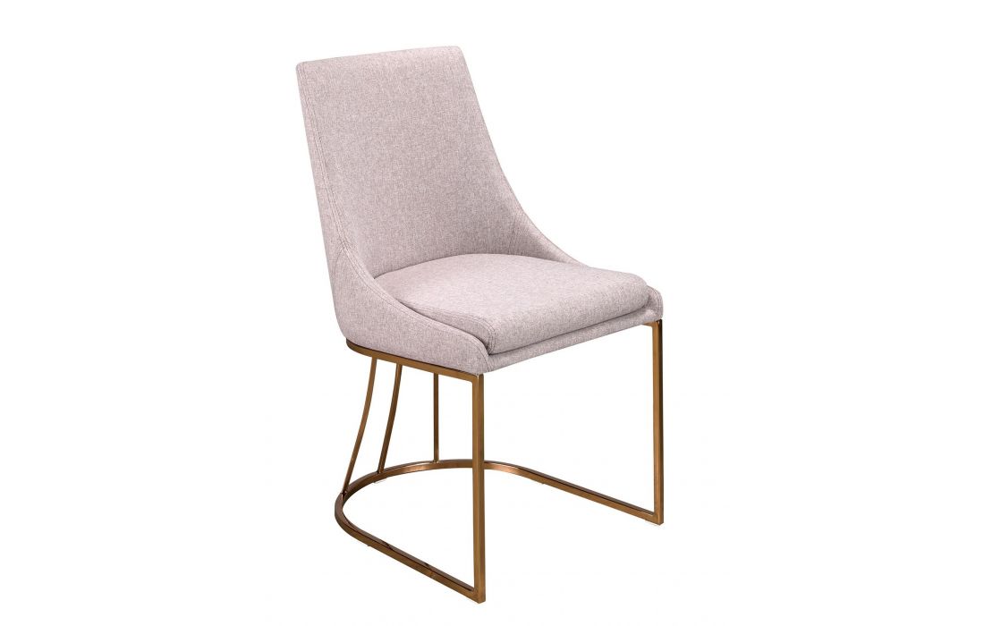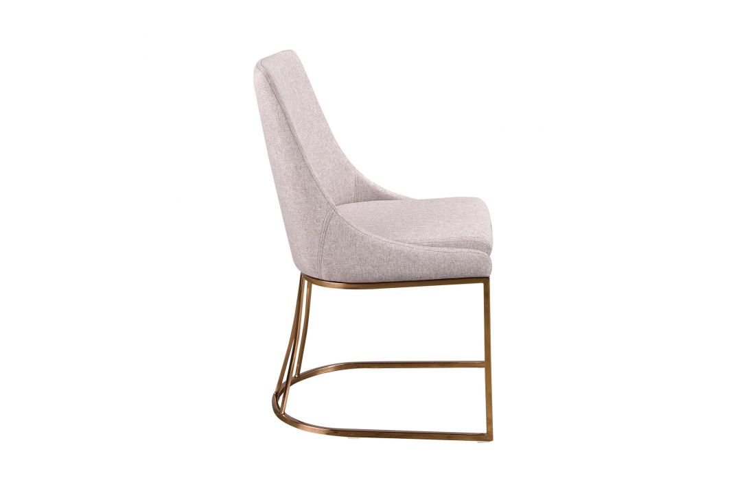 Modern design chair with seat and back upholstered in fabric and legs in rose gold chromed stainless steel, with an avant-garde yet timeless styleRecipient :
