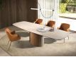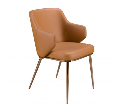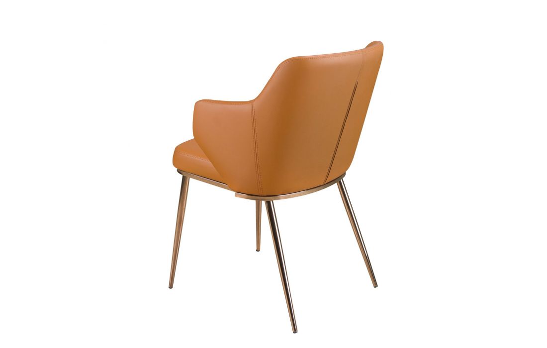 Modern design chair with armrests, seat and back upholstered in synthetic leather and legs in chromed stainless steel in rose gold with an avant-garde yet timeless styleRecipient :