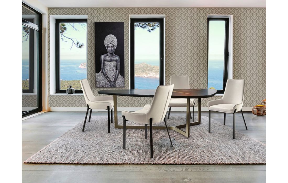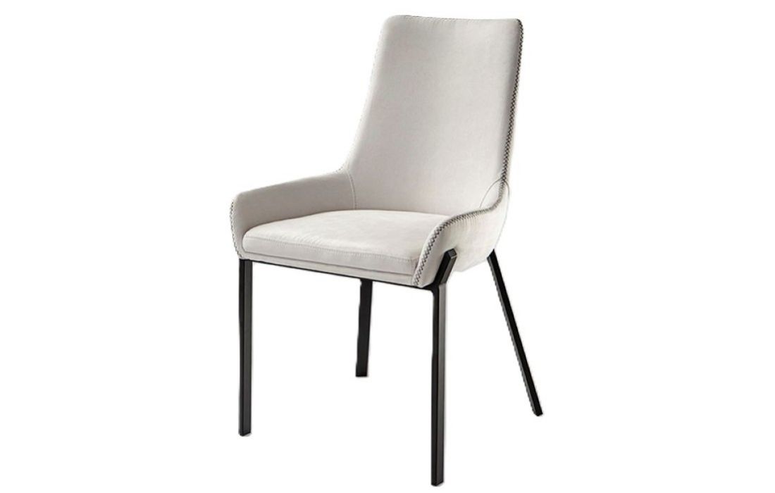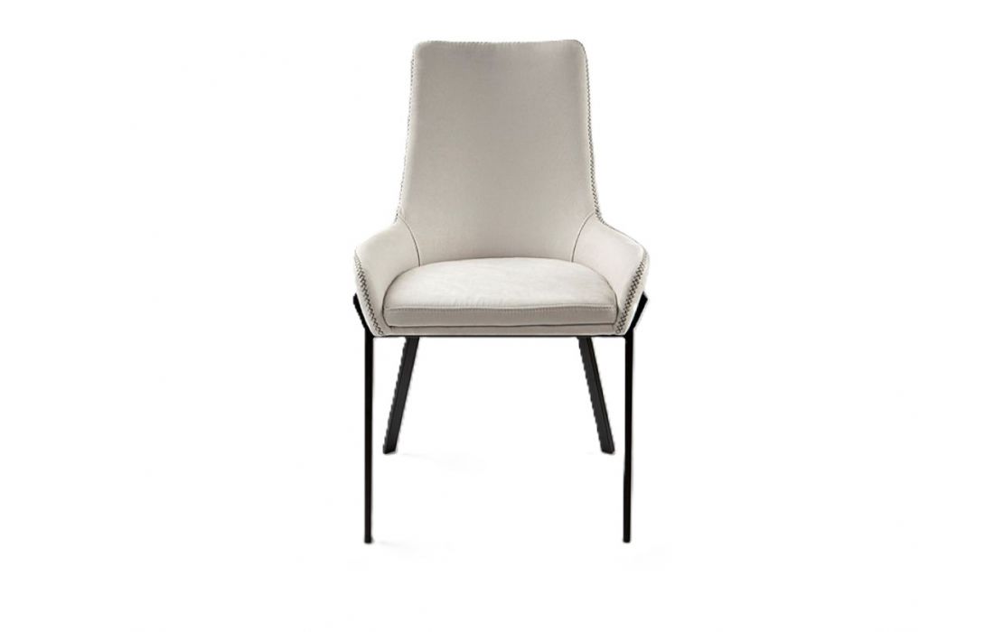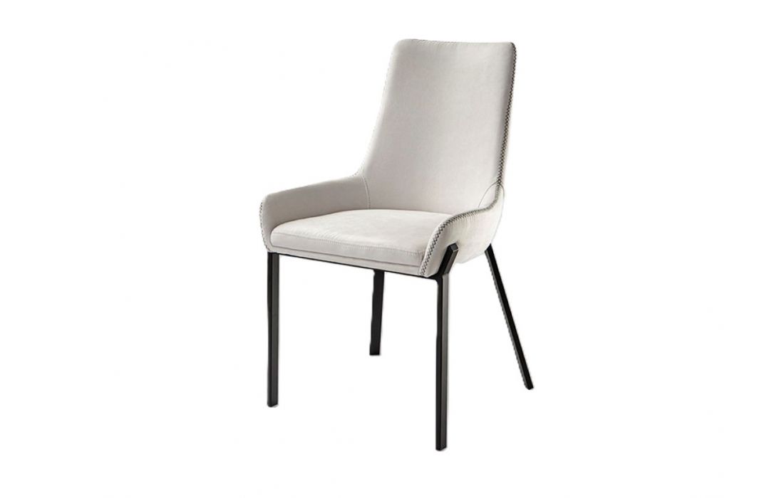 Chair in white fabric with decorative gray stitching and metal legsRecipient :