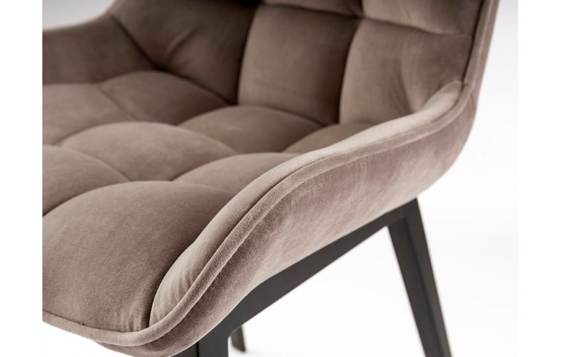 Chair with fabric (velvet) backrest and seat and metal legs with a matte finishRecipient :