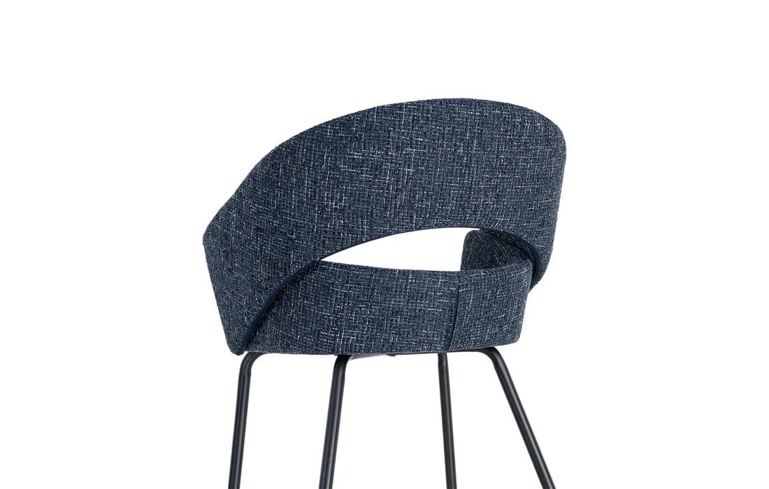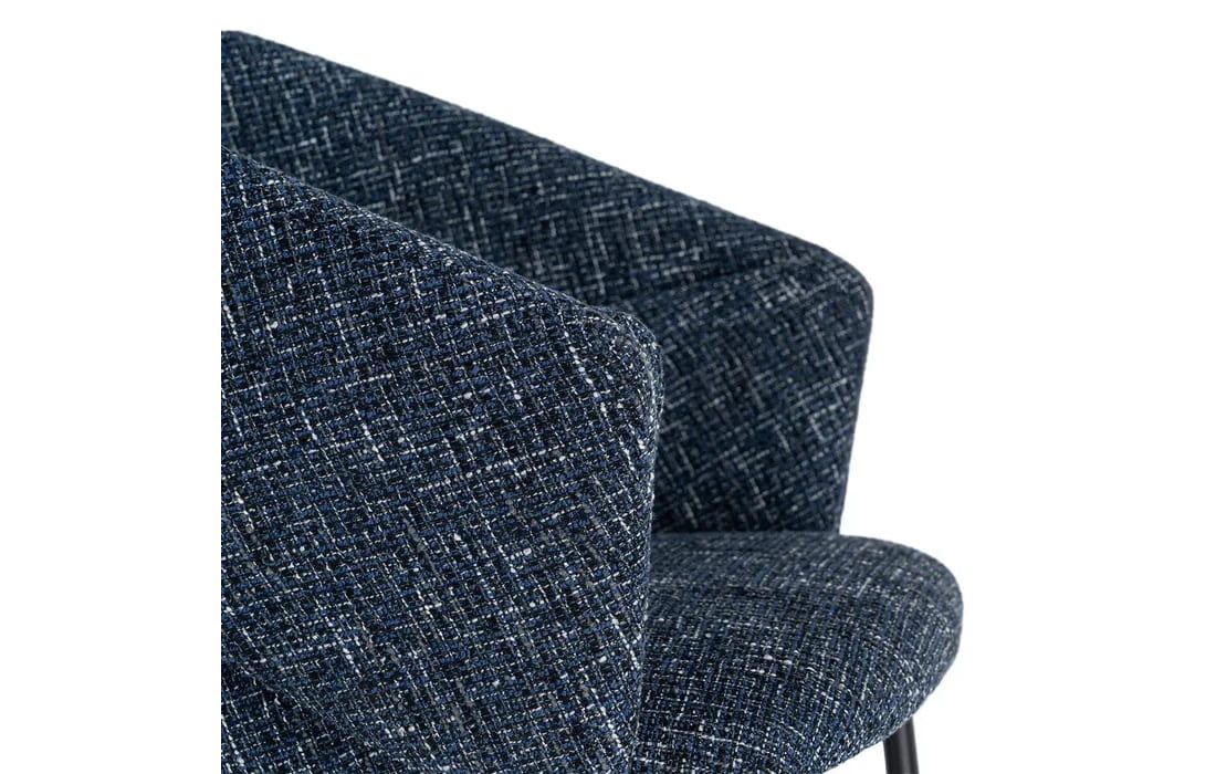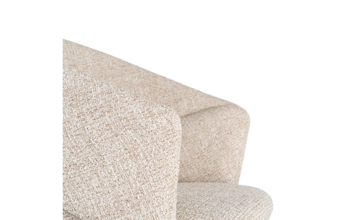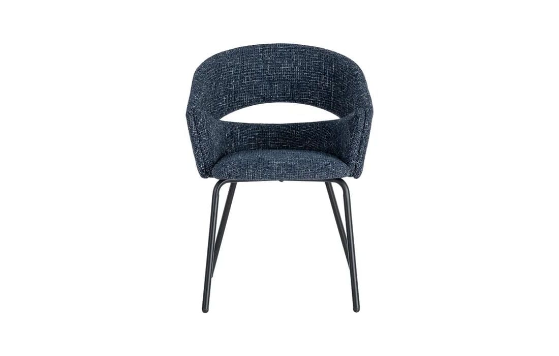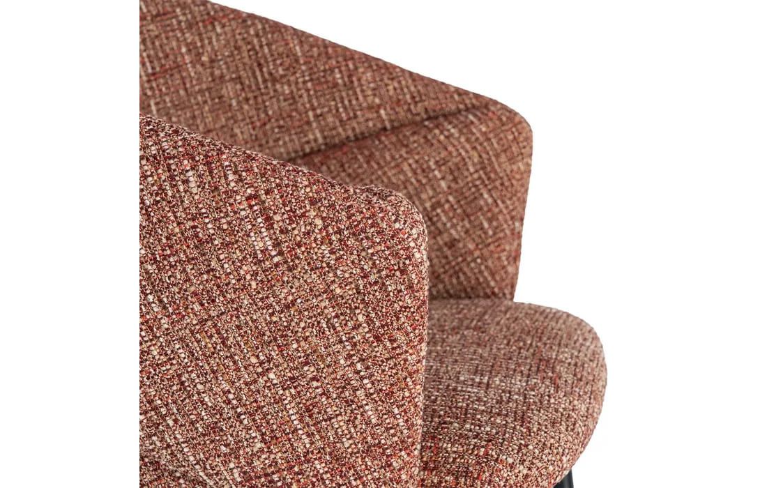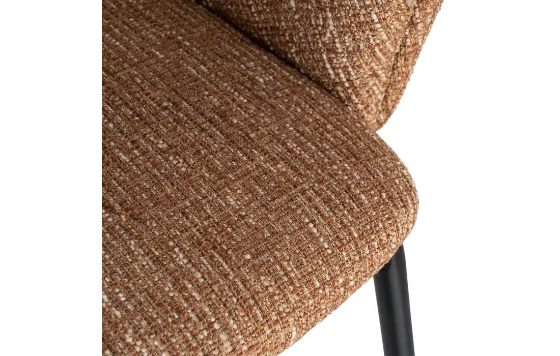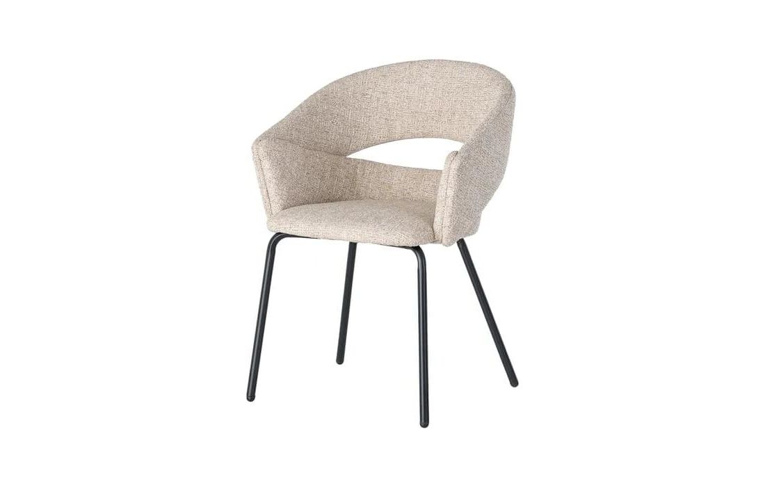 This chair features a modern and elegant design, combining a metal frame with a fabric-covered seat and backrest for comfort. The curved lines of the wraparound backrest offer ergonomic support, while the metal legs ensure stability. Available in beige, taupe, light brown, terracotta, and blue.Recipient :