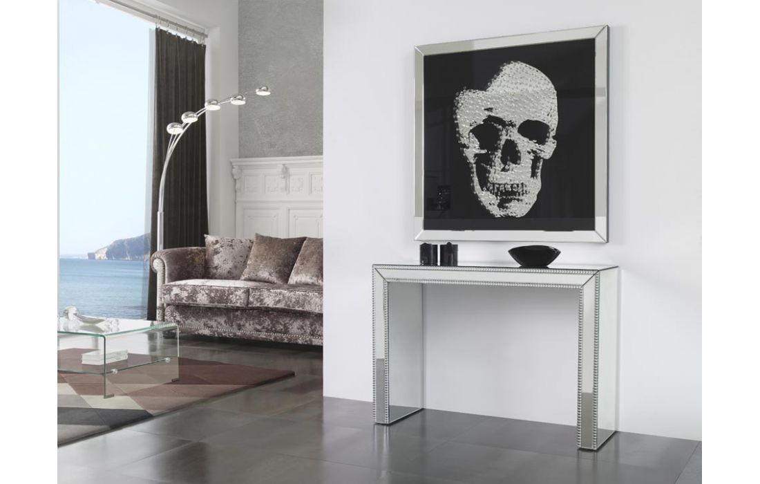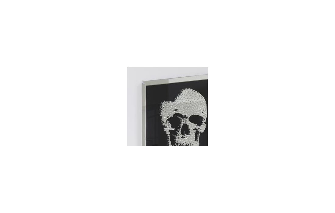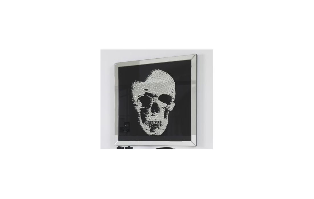 Square mirror with skull design.