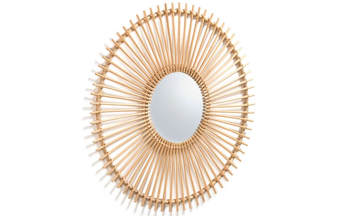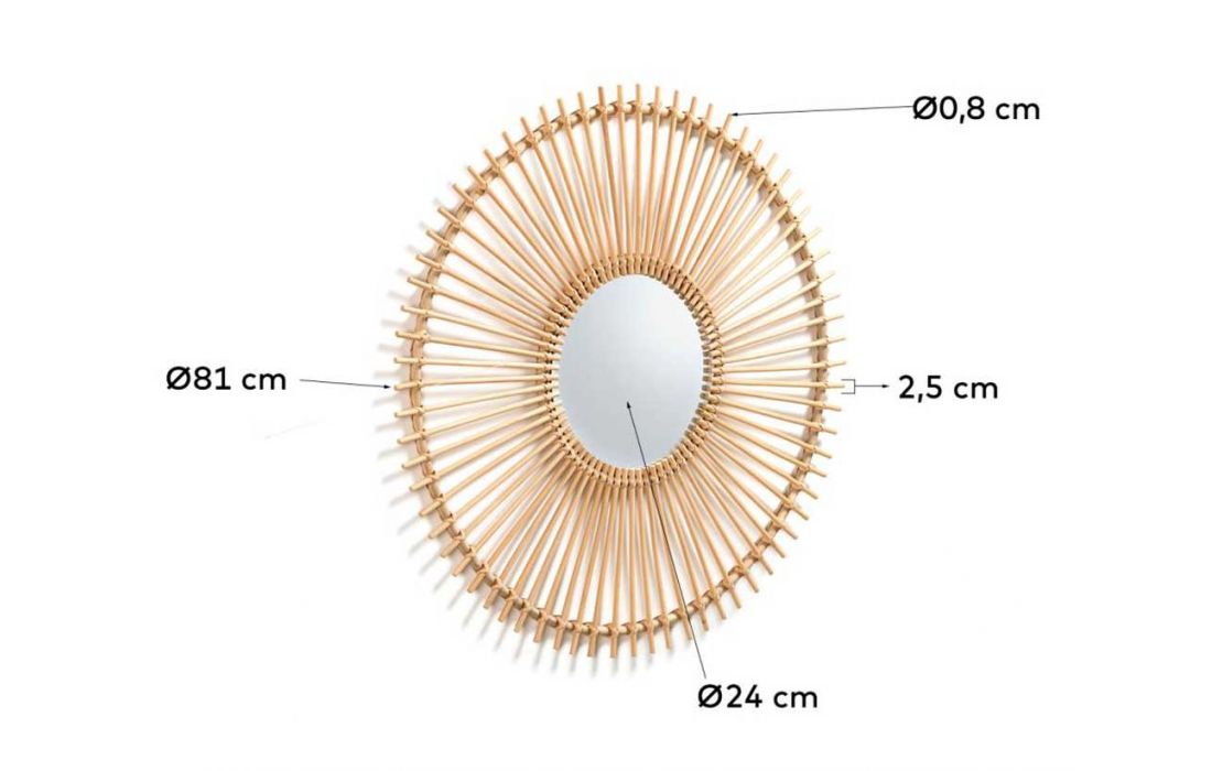 Mirror with rattan frame and natural finish, it is a 100% handmade design piece.