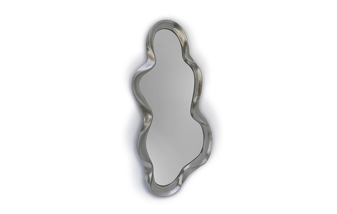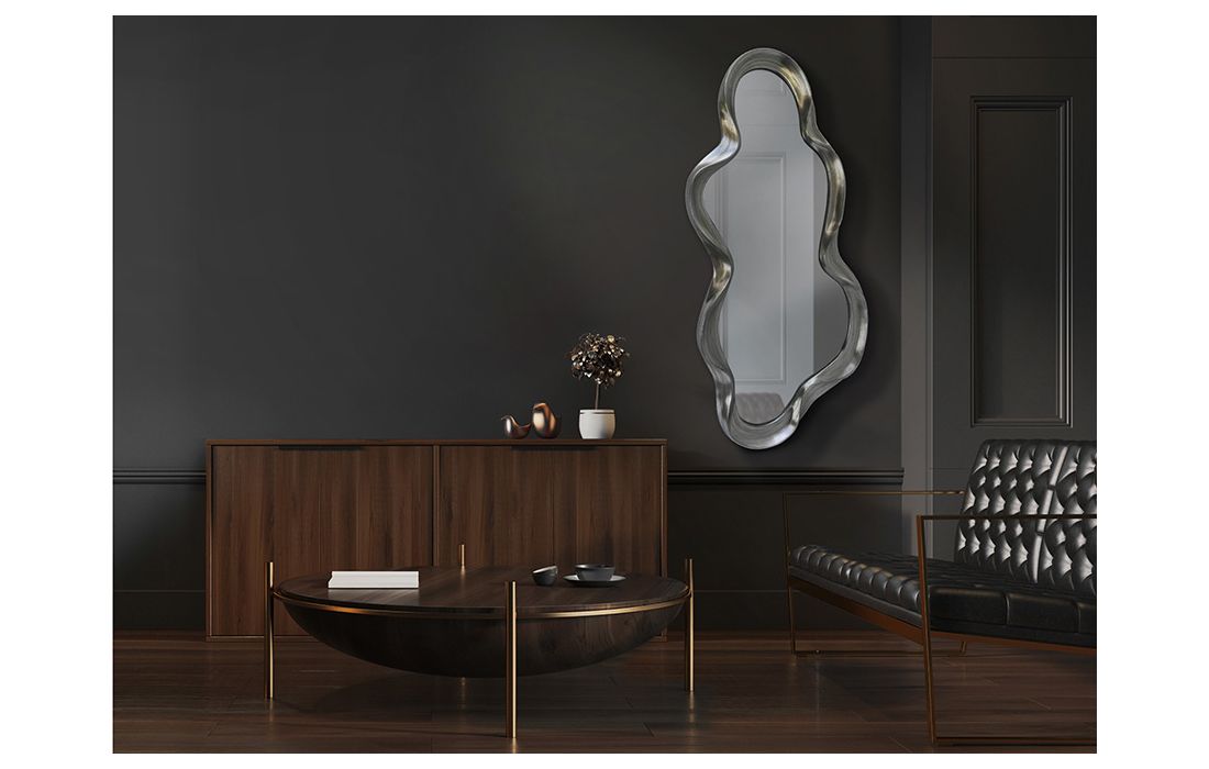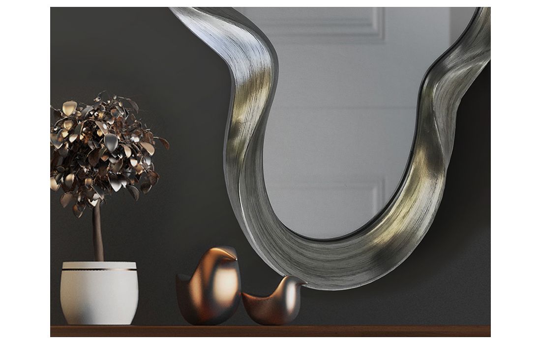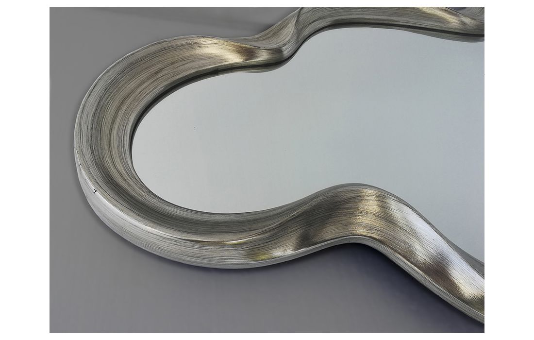 Mirror with molded polyurethane frame with silver foil finish