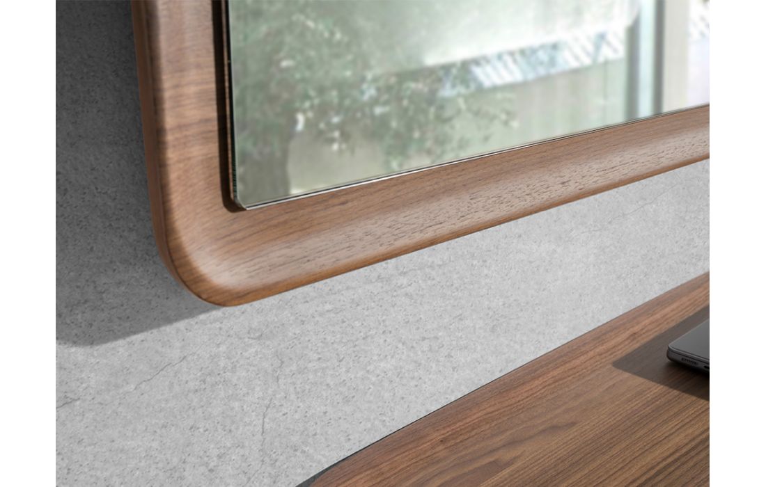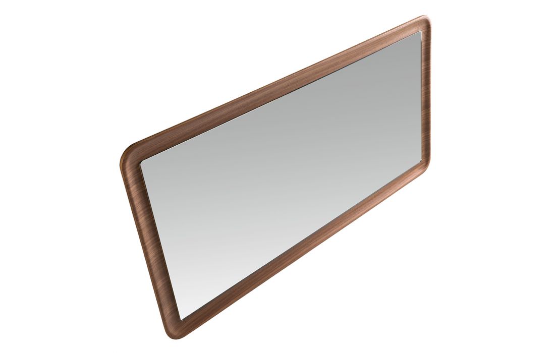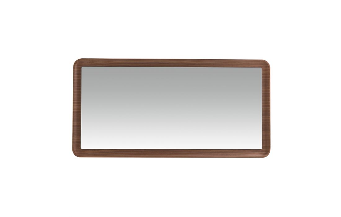 Rectangular wall mirror with wood frame veneered in natural walnut..