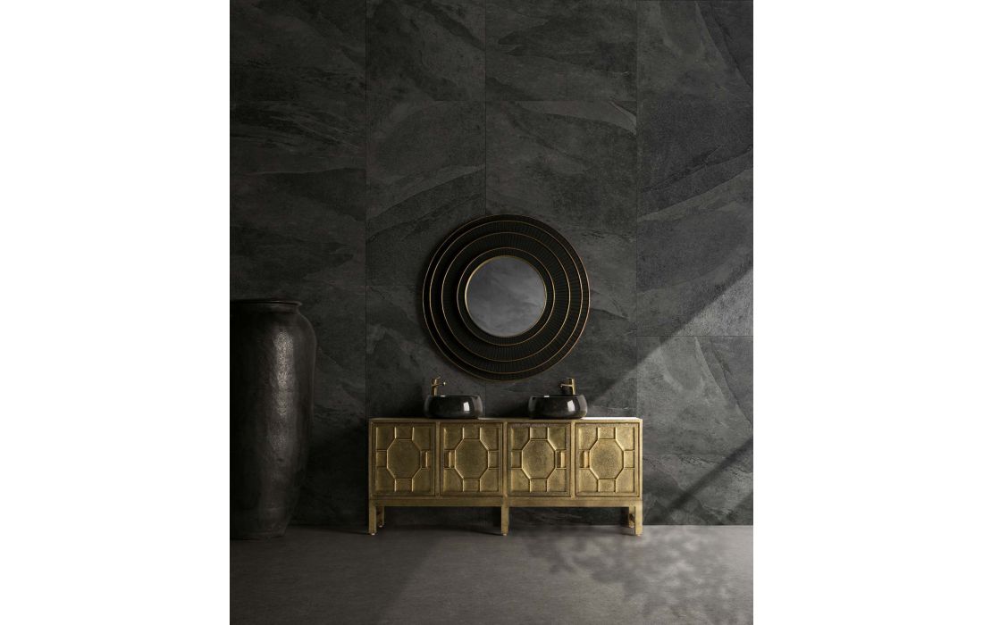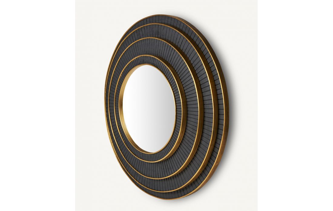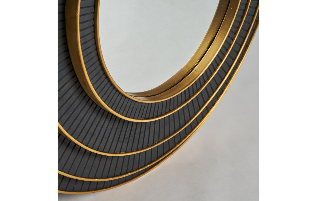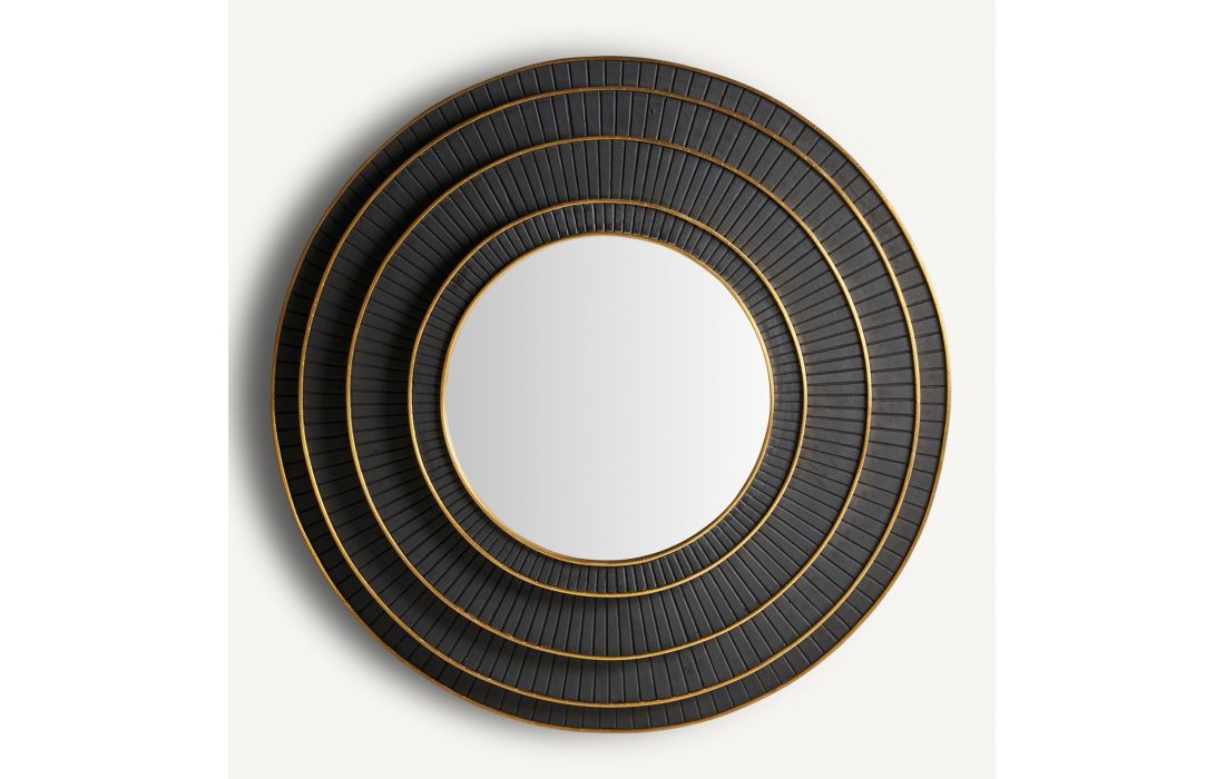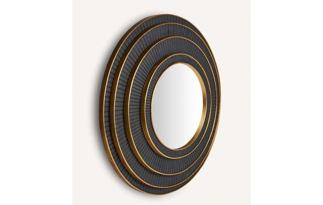 Round black/gold mango wood mirror