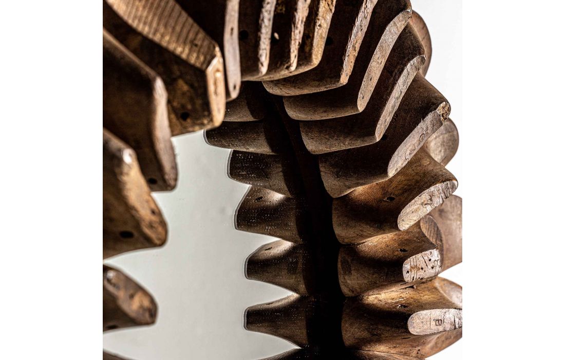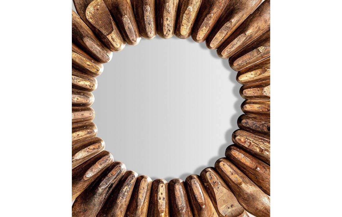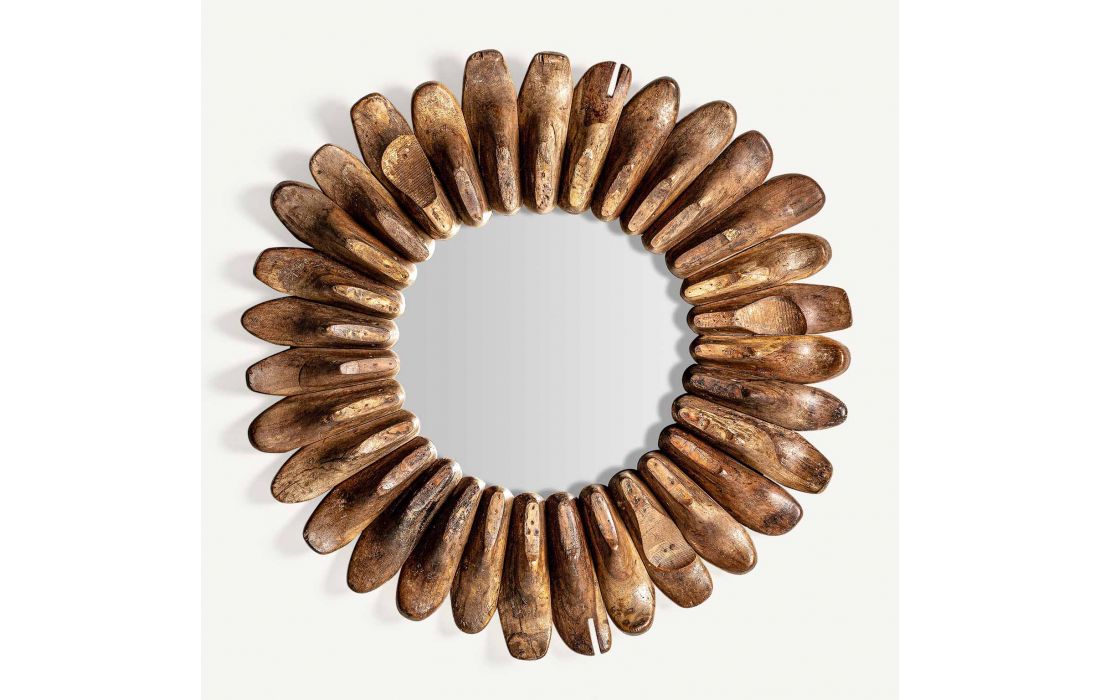 Round mirror in recycled mango wood aged natural color