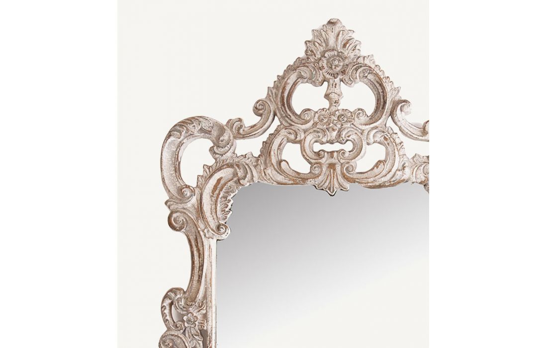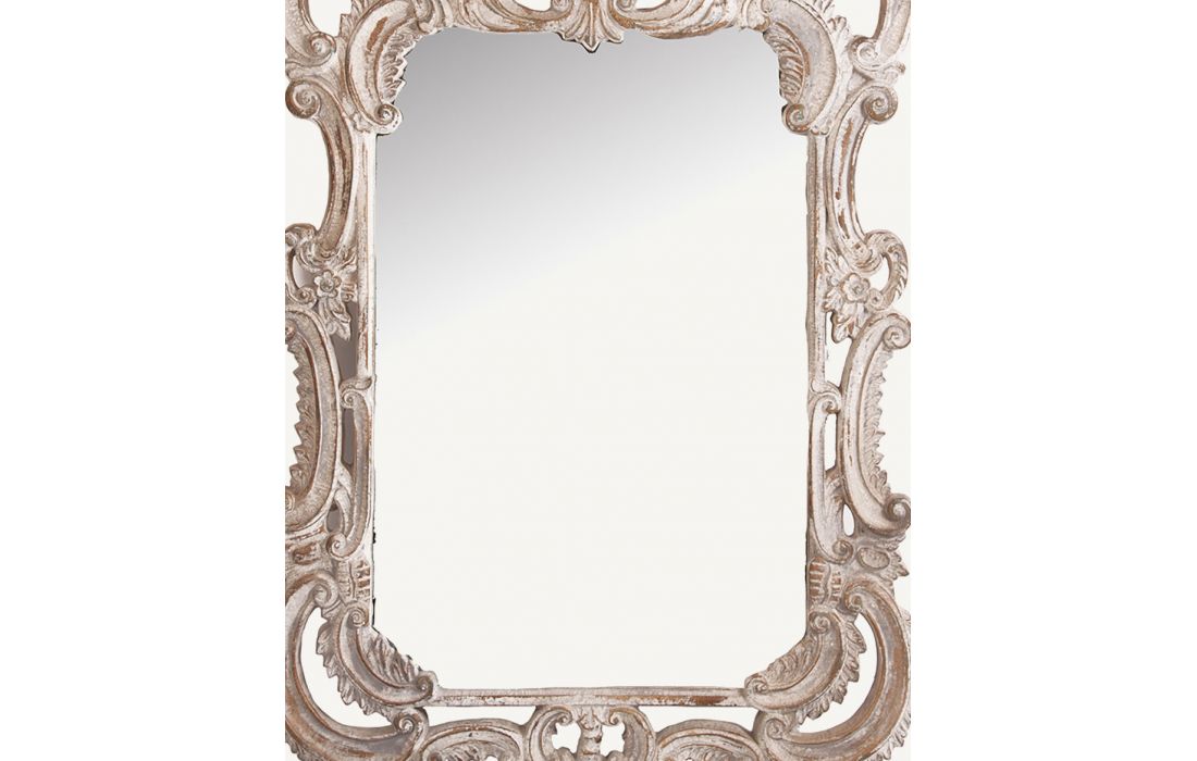 Rectangular mirror with frame in distressed white resin
