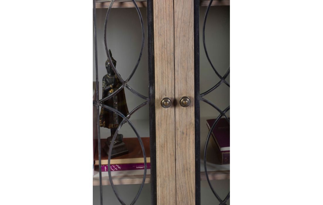 Mobile high classic wooden structure and two doors with glass and metal details.