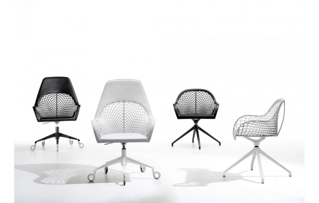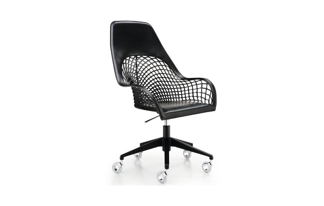 Swivel and height-adjustable chair based on metal trestle with wheels, leather seat and backrest. Integrated tilt mechanismRecipient :