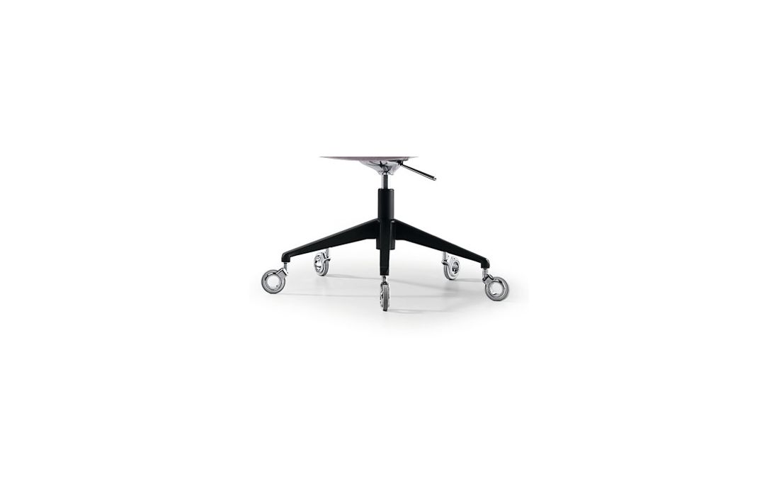Swivel and height-adjustable chair with high fabric-covered backrest and lacquered metal base with wheels.Recipient :