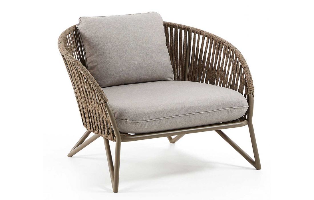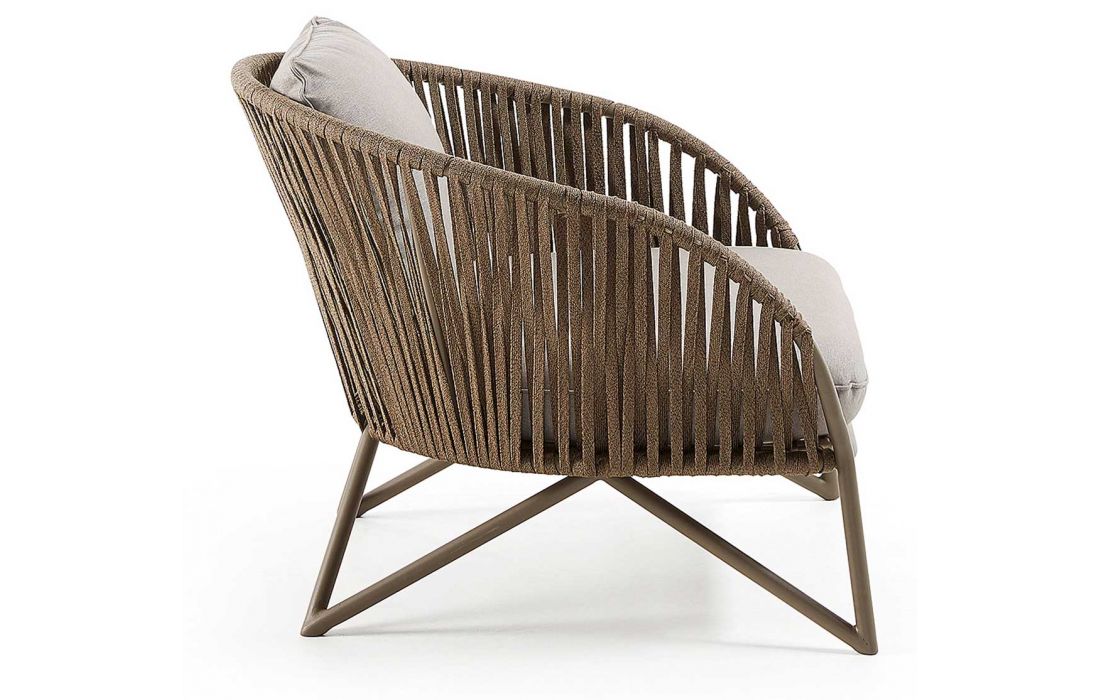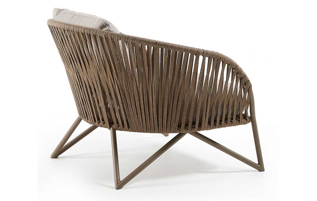 Armchair made of metal and rope, the backrest and seat are braided by hand, following the curves of the structure.