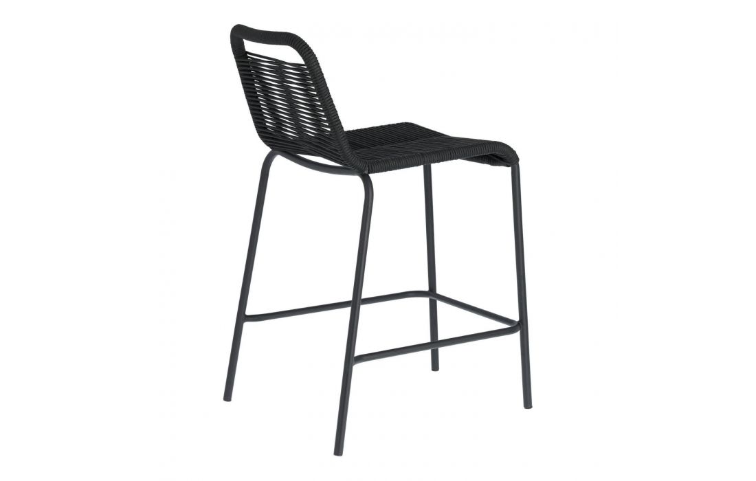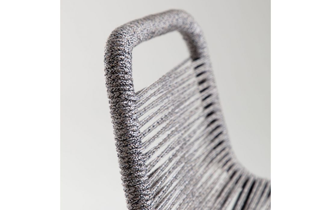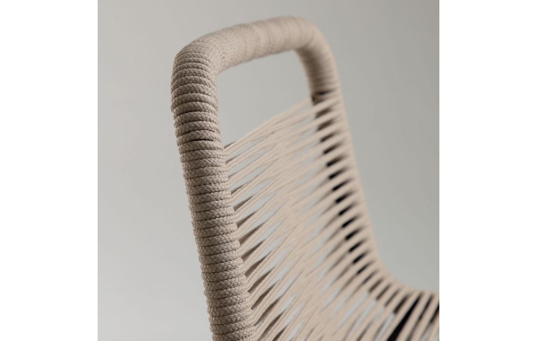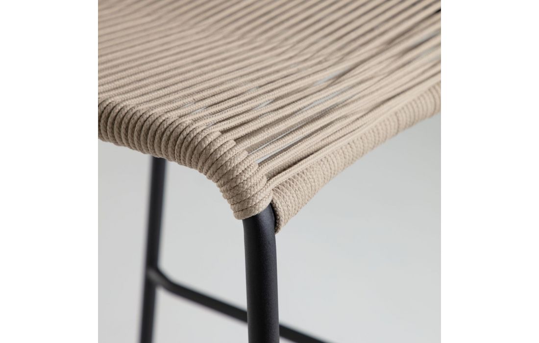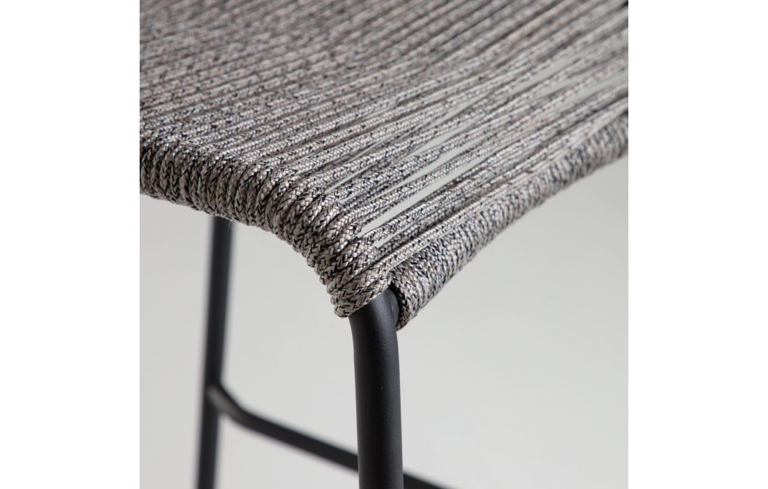 Bar stool made of rust and corrosion resistant galvanized steel, seat is hand braided with UV resistant polyester rope. Stackable benches.