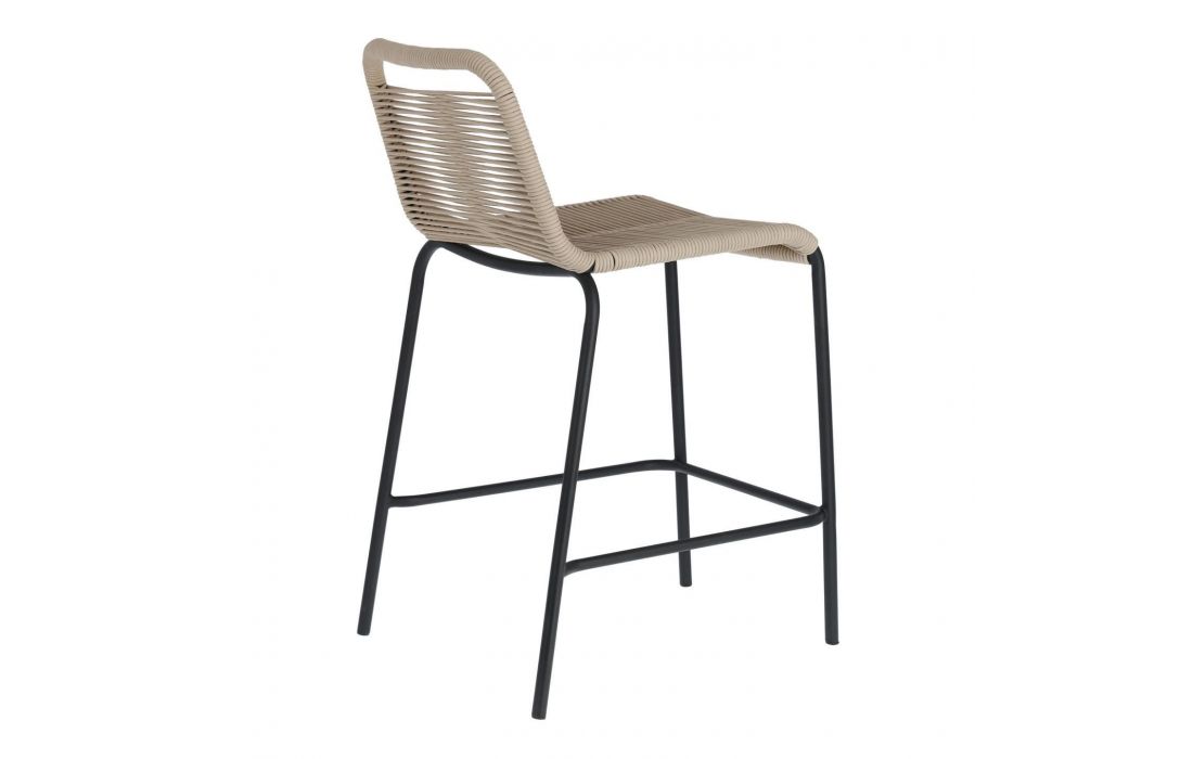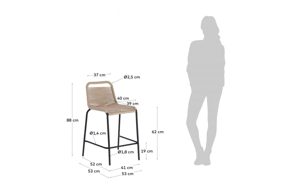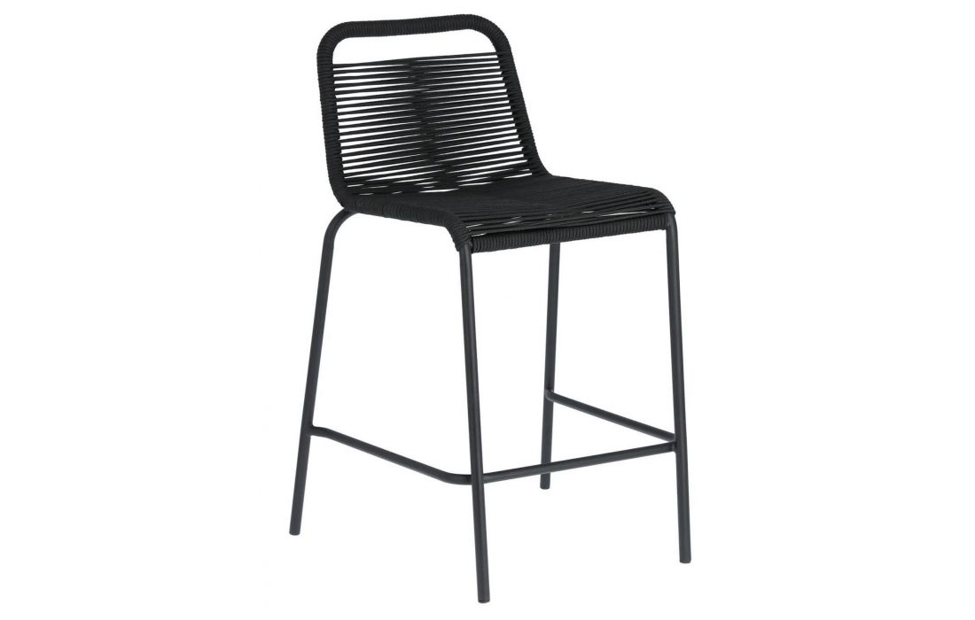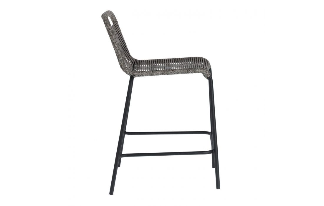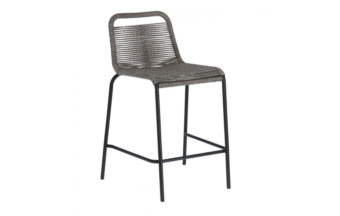Bar stool made of rust and corrosion resistant galvanized steel, seat is hand braided with UV resistant polyester rope. Stackable benches.