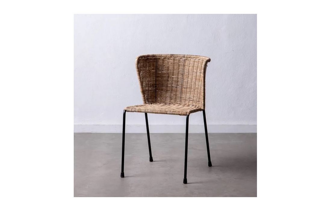 Chair in natural fiber with black metal legs.