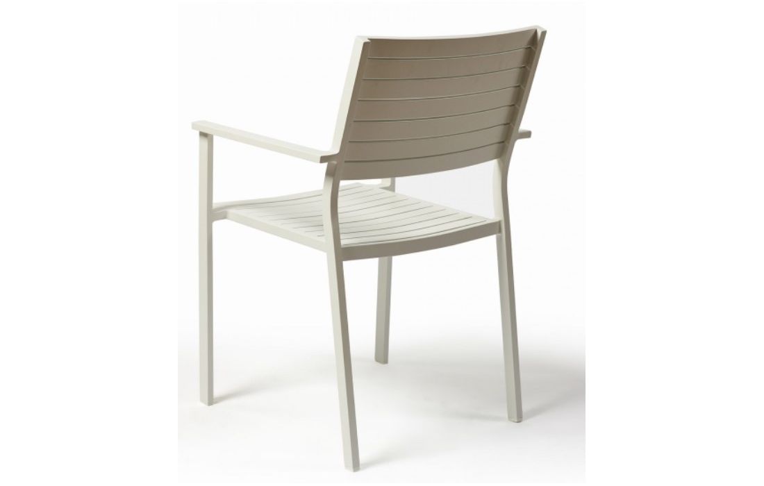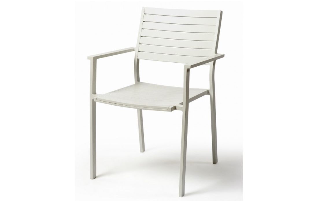 Mediterranean style chair made entirely in white aluminum. It's stackable.