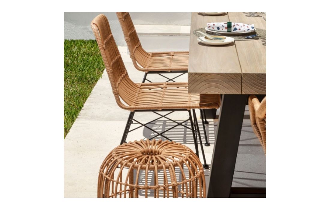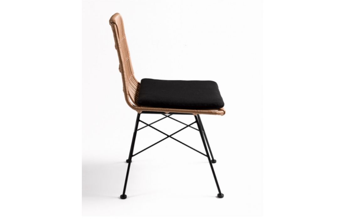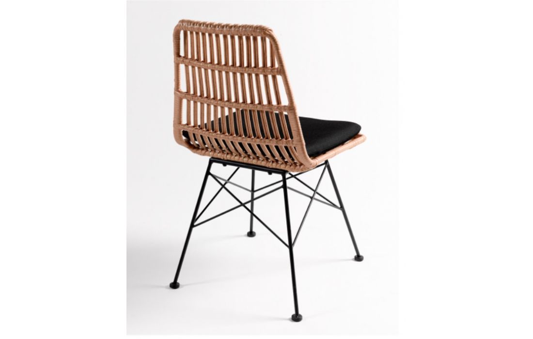Synthetic rattan chair and black metal structure.