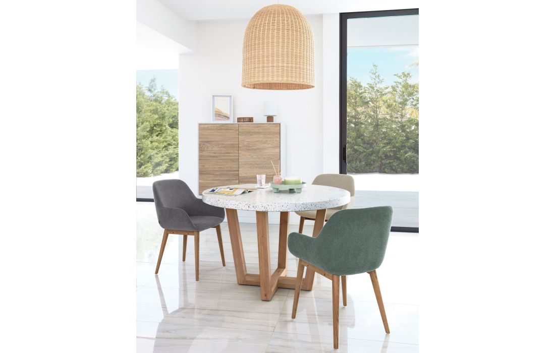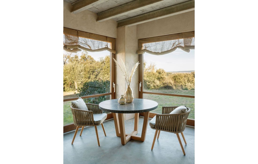 It is recommended to use a towel and coasters to avoid stains. Do not use abrasive products.