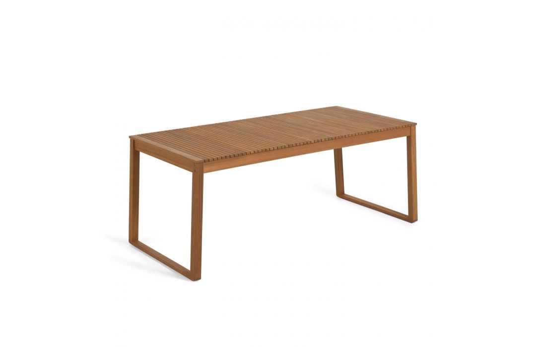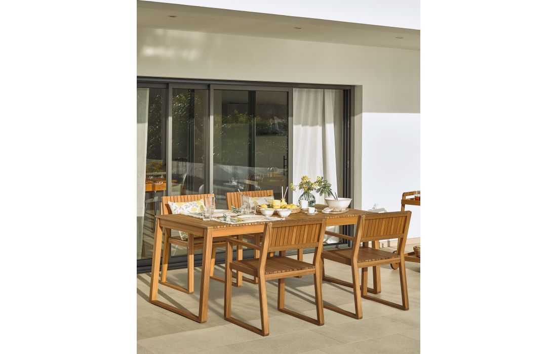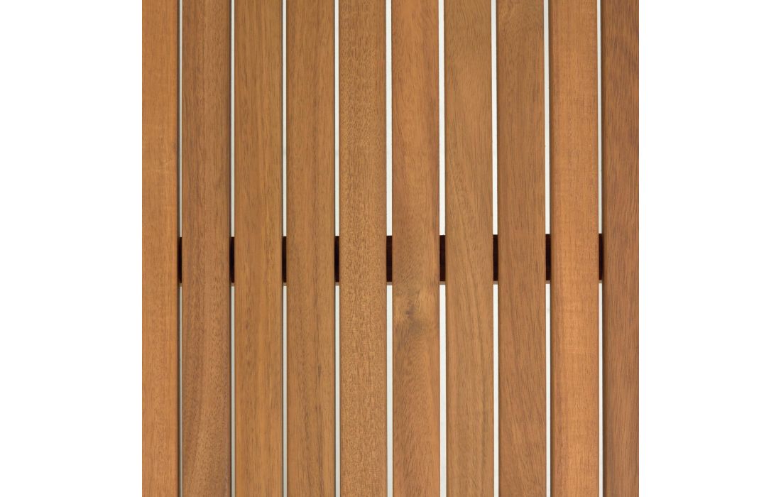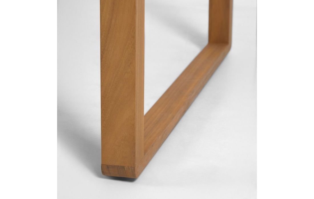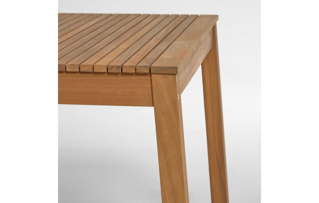Table made with solid acacia wood, treated with oil and a teak effect finish.