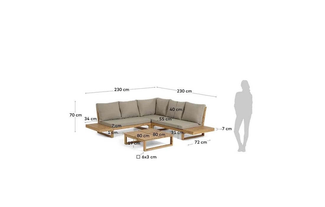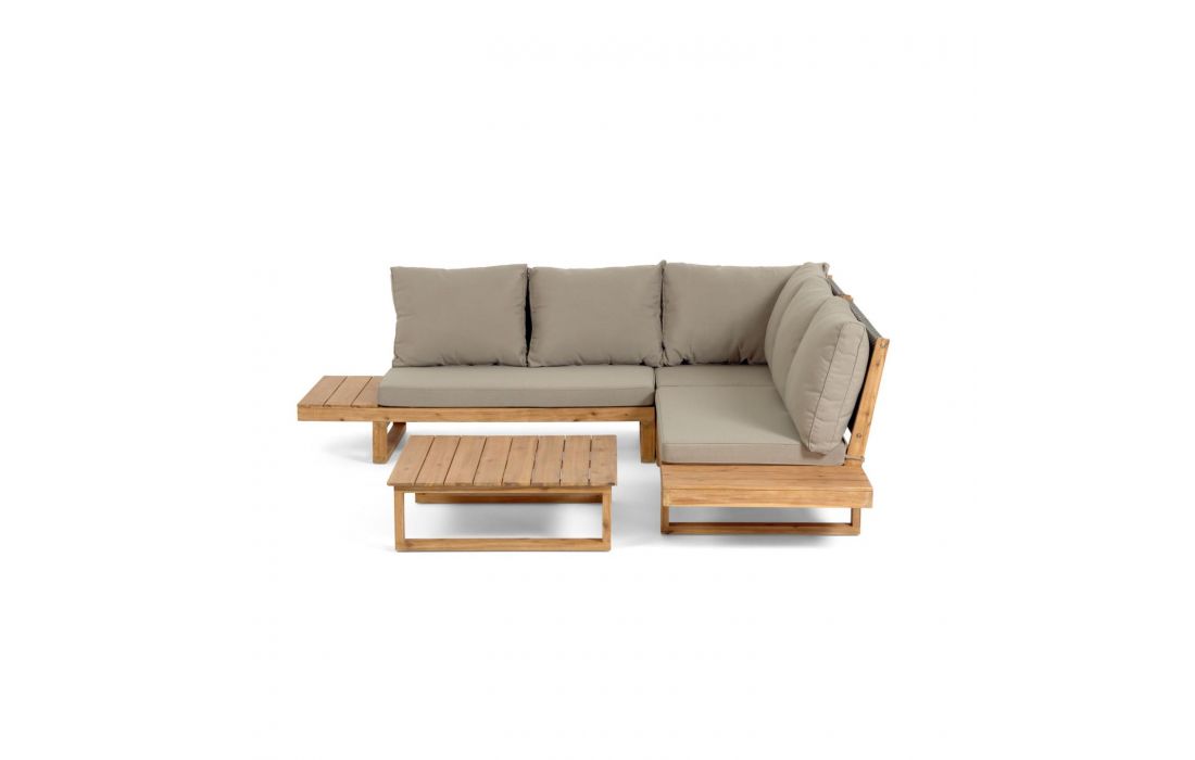 Outdoor set consisting of a 5-seat corner sofa with 2 side tables and a coffee table, made of 100% FSC solid acacia wood