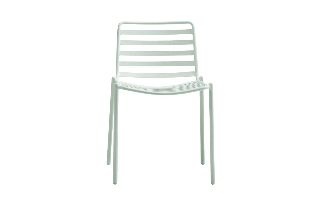 Chair with four legs in lacquered steel, stackable in up to four pieces and suitable for outdoor use.Recipient :