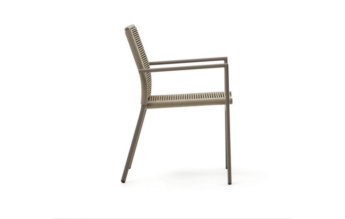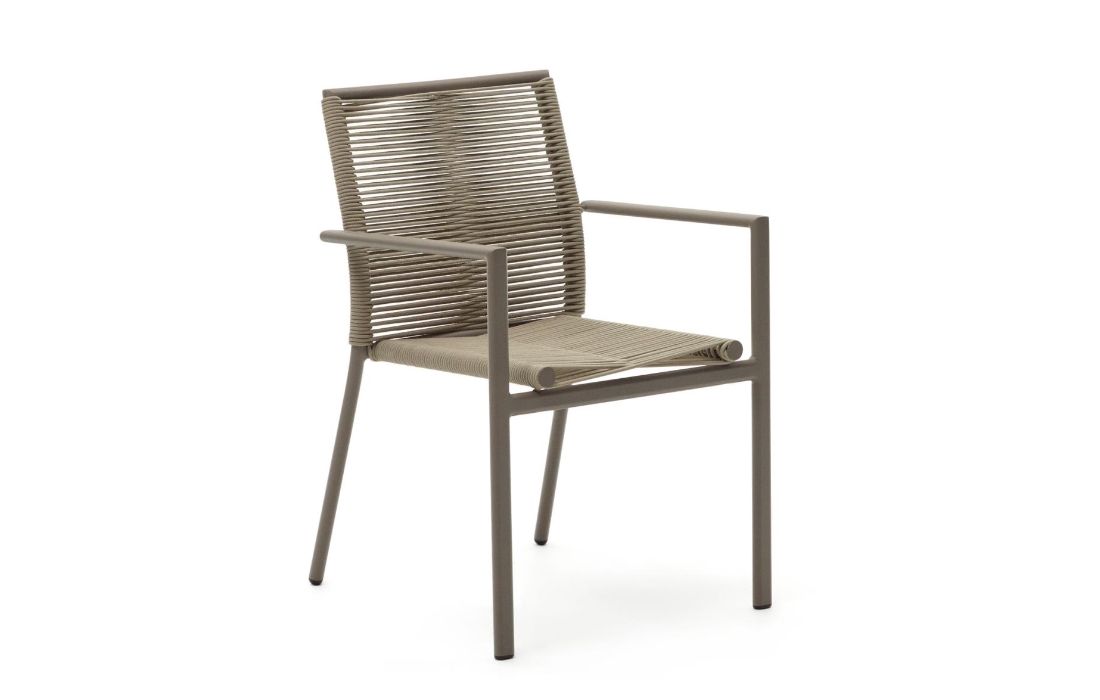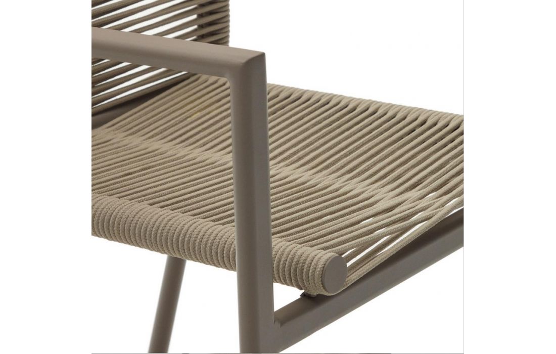 Aluminum chair, with green painted finish, with rope backrest and upholstered seat.