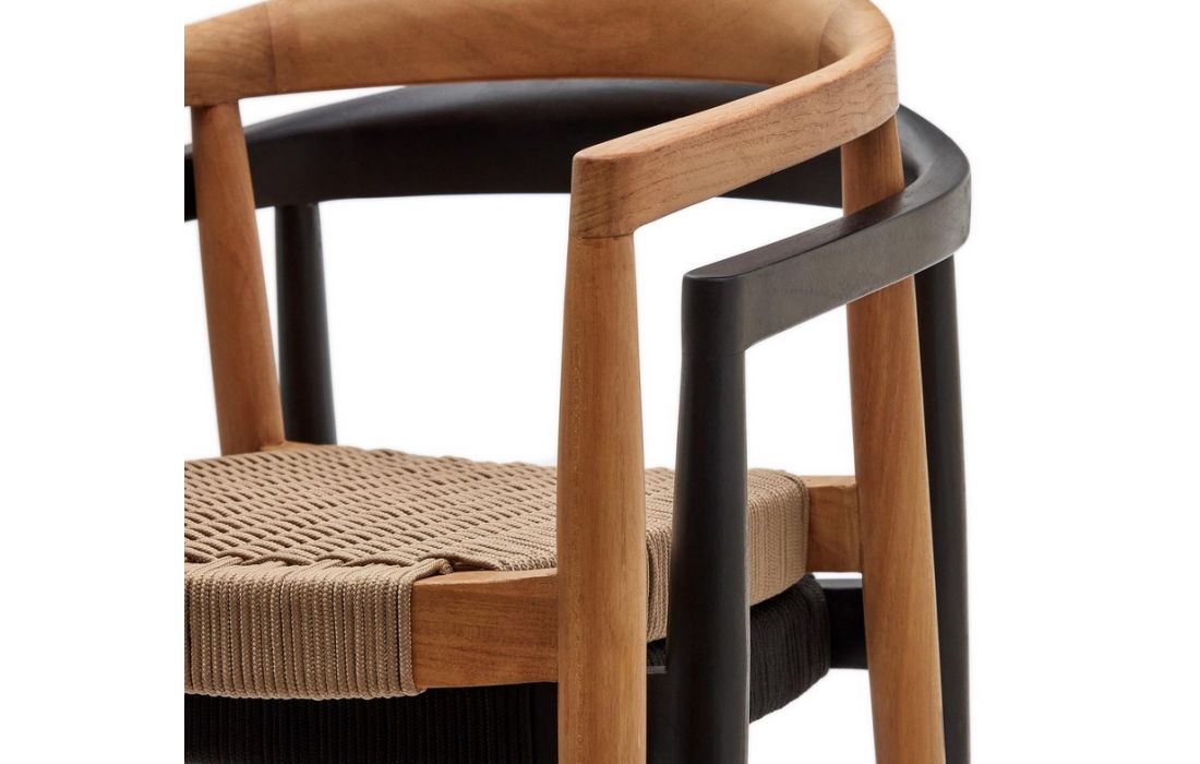 Solid teak wood chair with rope seat
