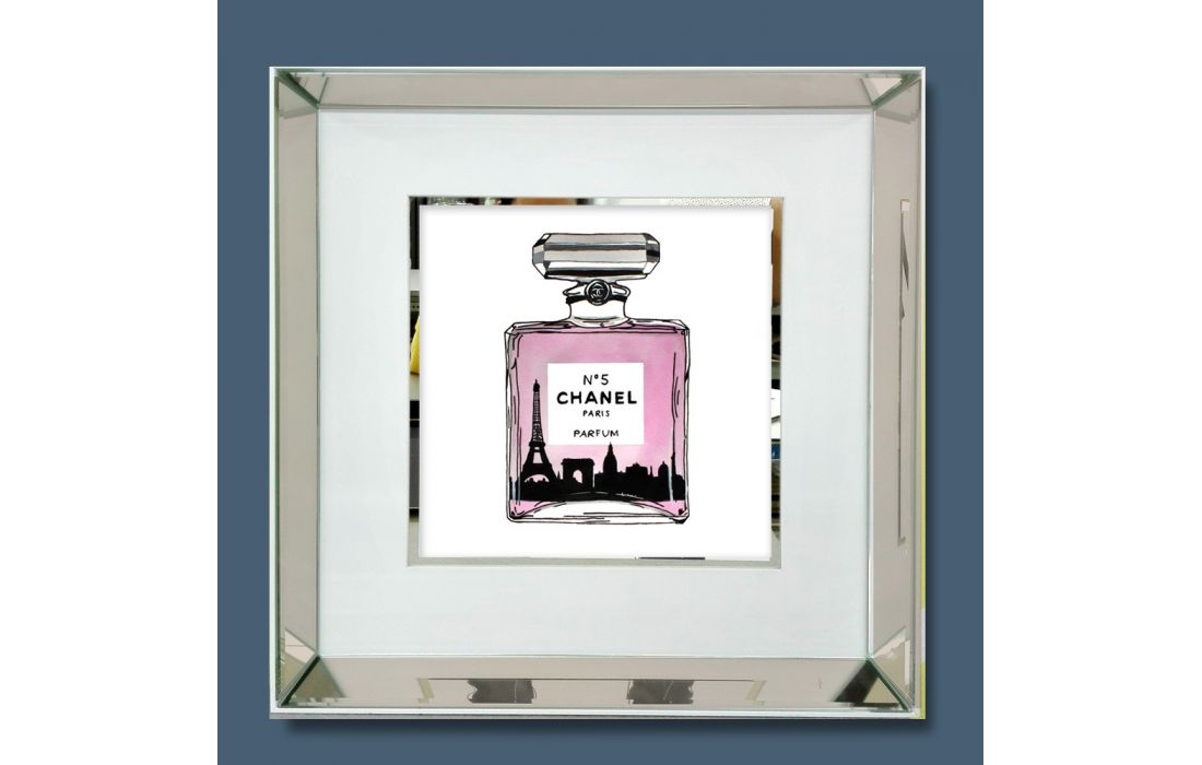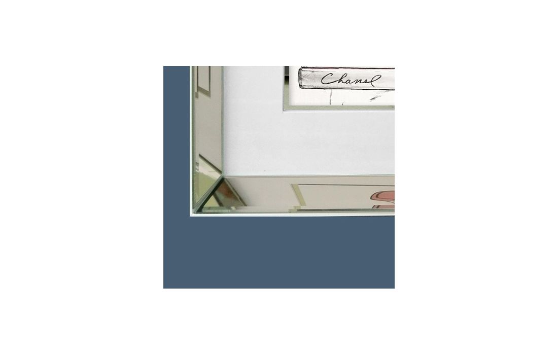 Set of 4 pictures with print, framed with glass and frame in matte white lacquer and mirror.