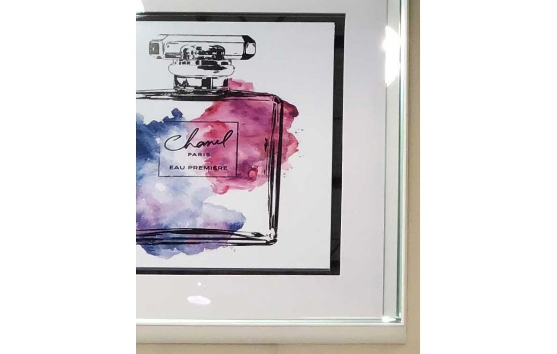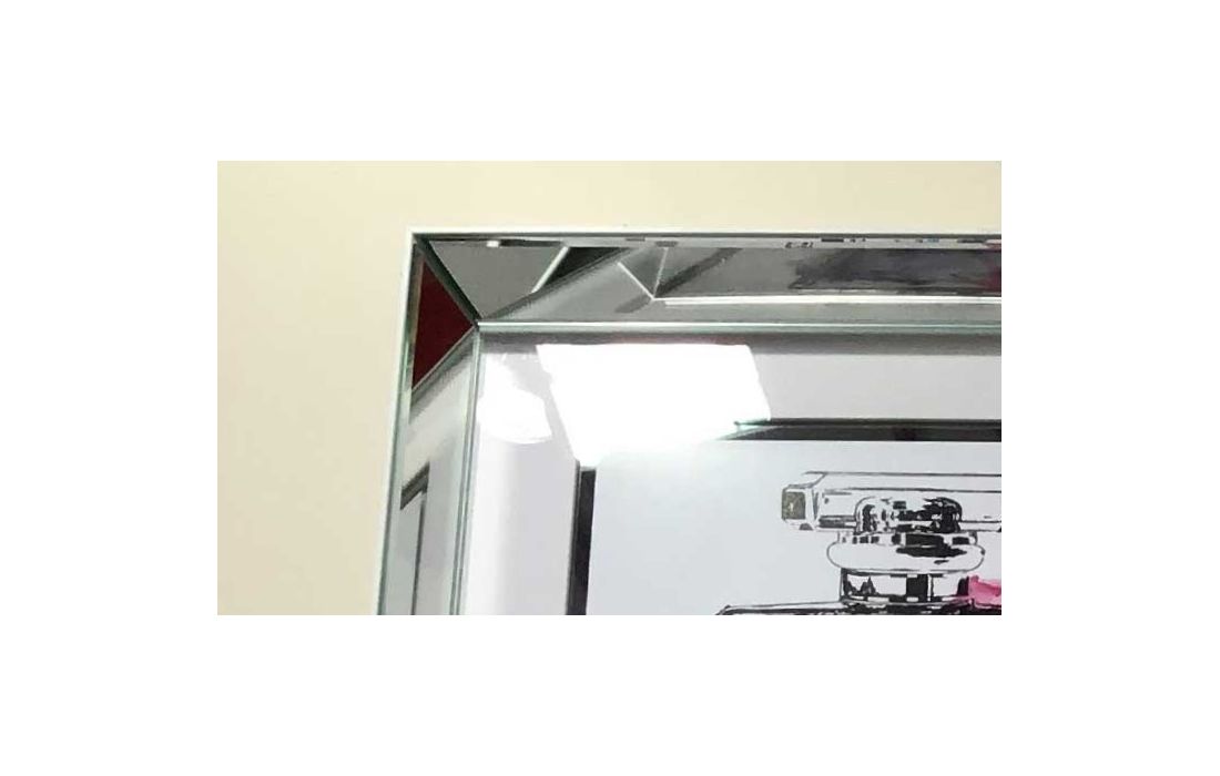 Picture with print, framed with glass and frame in matte white lacquer and mirror.