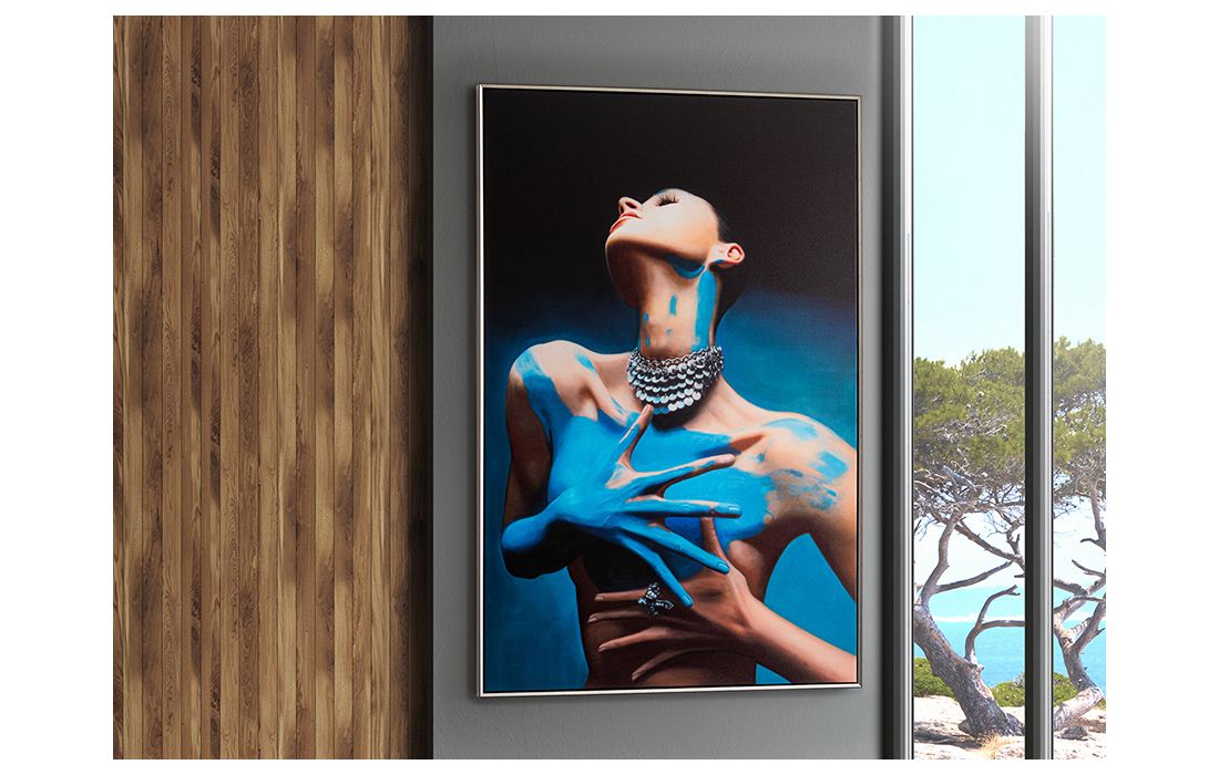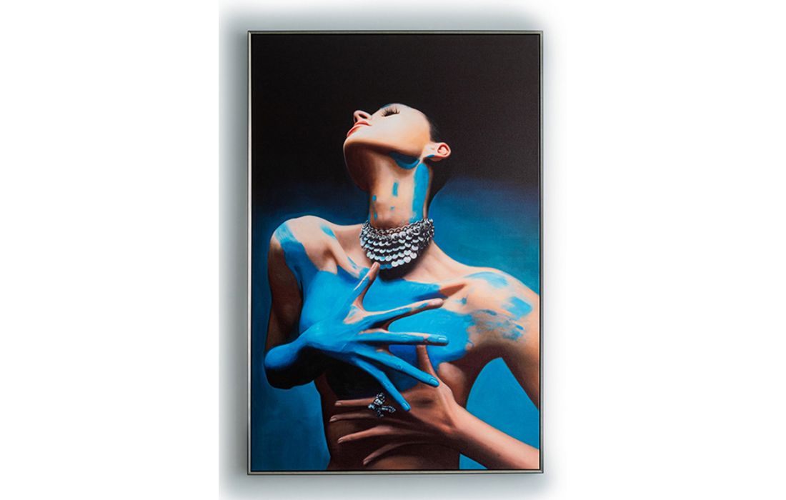 Printed female bust canvas, MDF frame with black and silver satin finish.