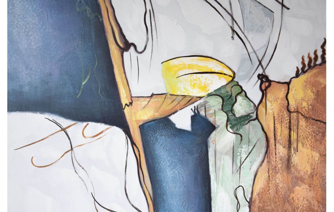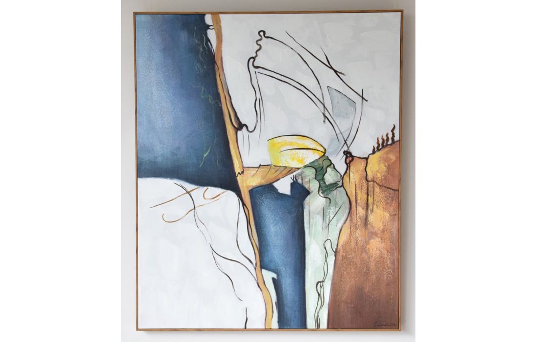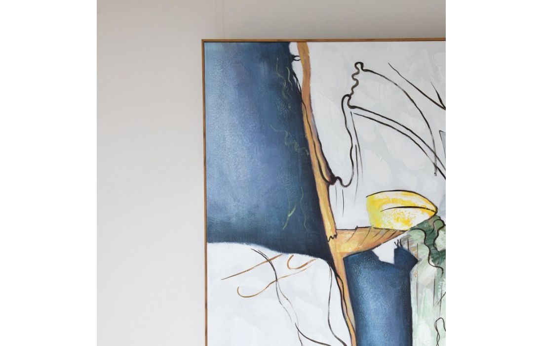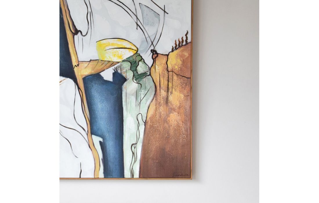 Hand painted abstract painting on canvas with natural wood frame