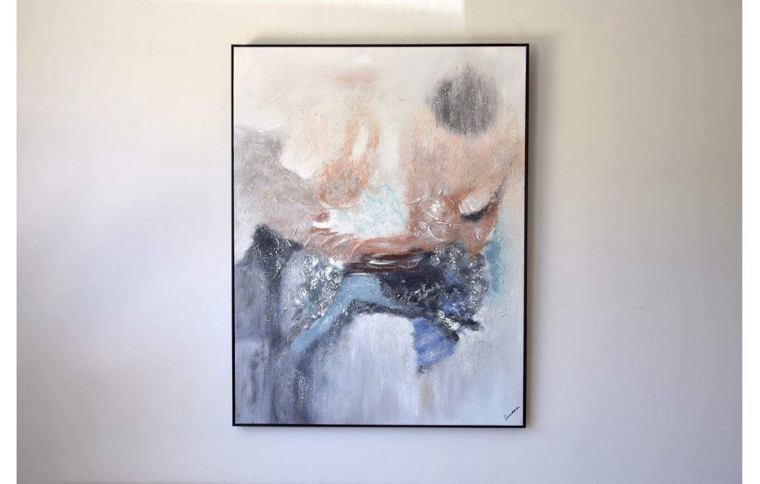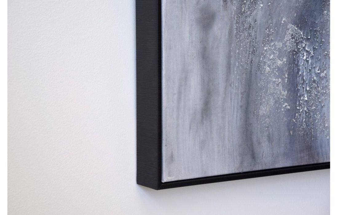 Black frame with abstract painting made by hand on canvas.