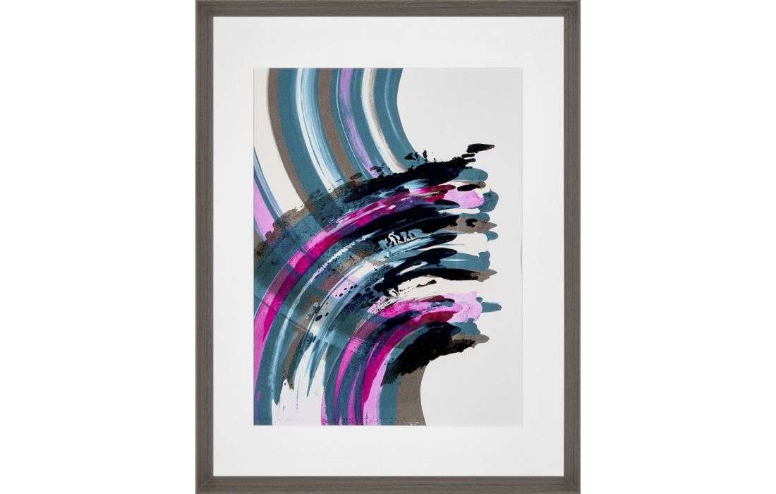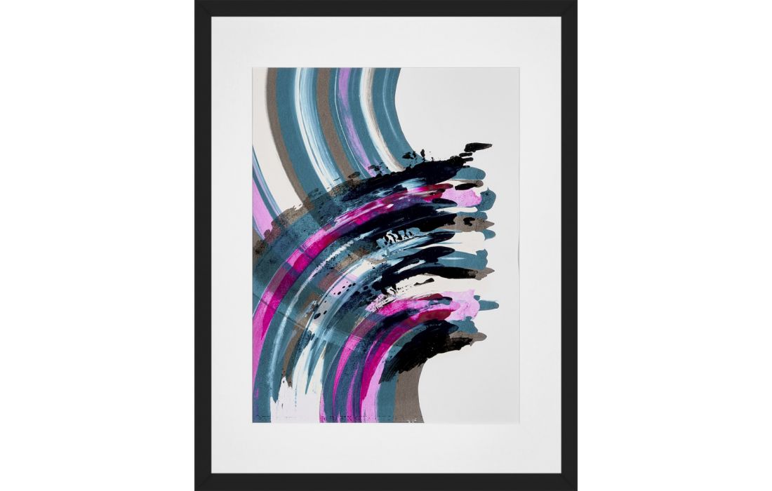 Original abstract painting by author David Siver on canvas with glass and frame, options in white, black and gray