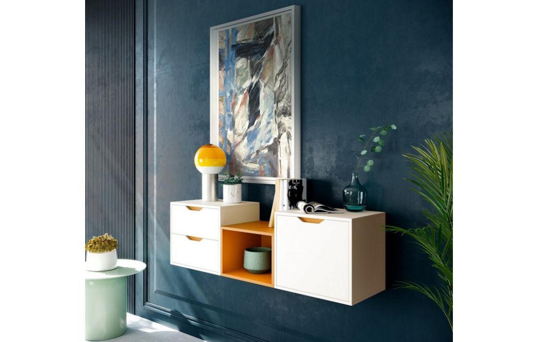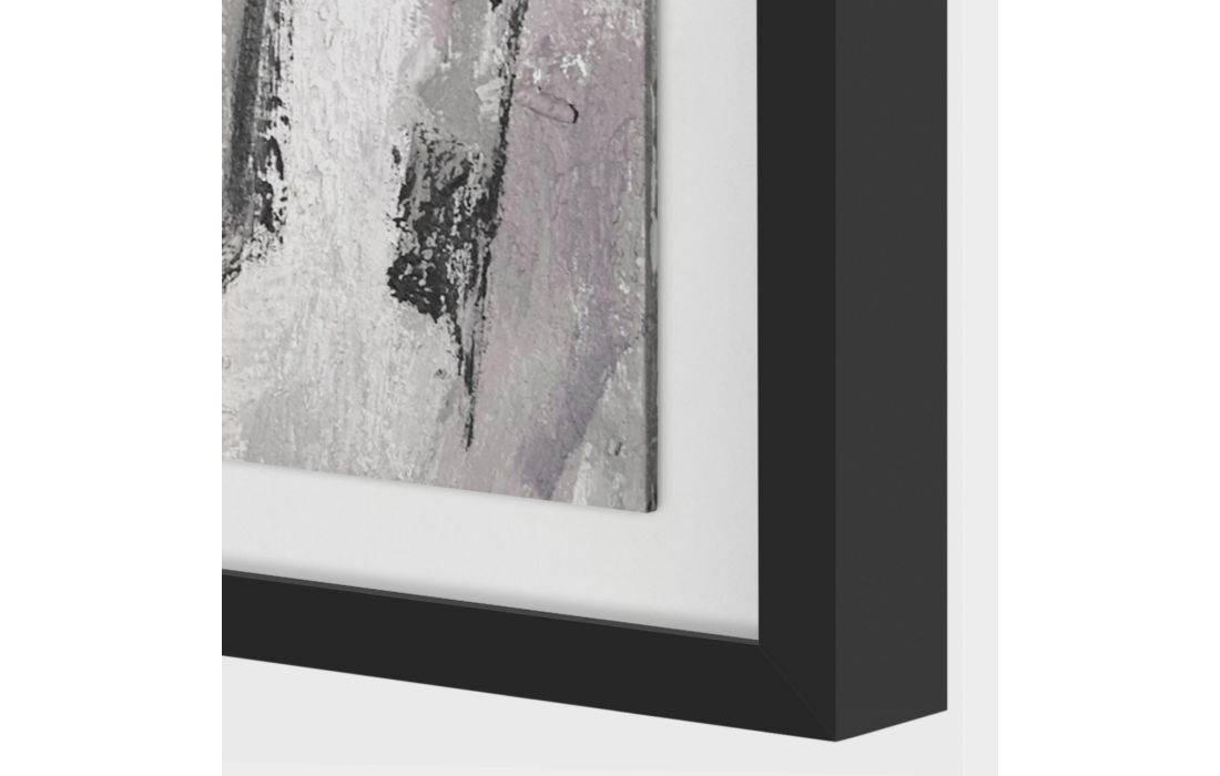 Original abstract painting by the author Diana Fuertes on canvas with glass and wooden frame, options in white and black lacquered colors